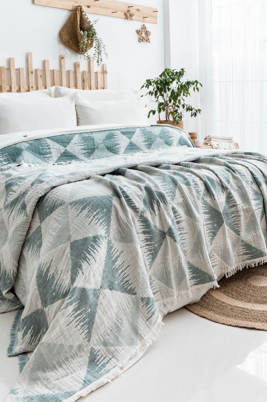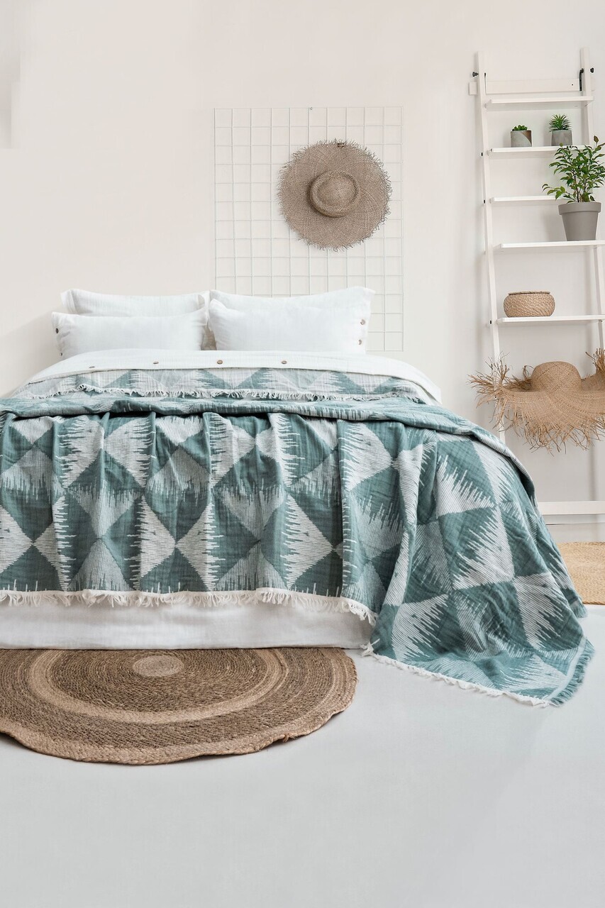 Set cuvertura de pat dubla 3 piese, L'essentiel Maison, Dolce, Bumbac , Verde