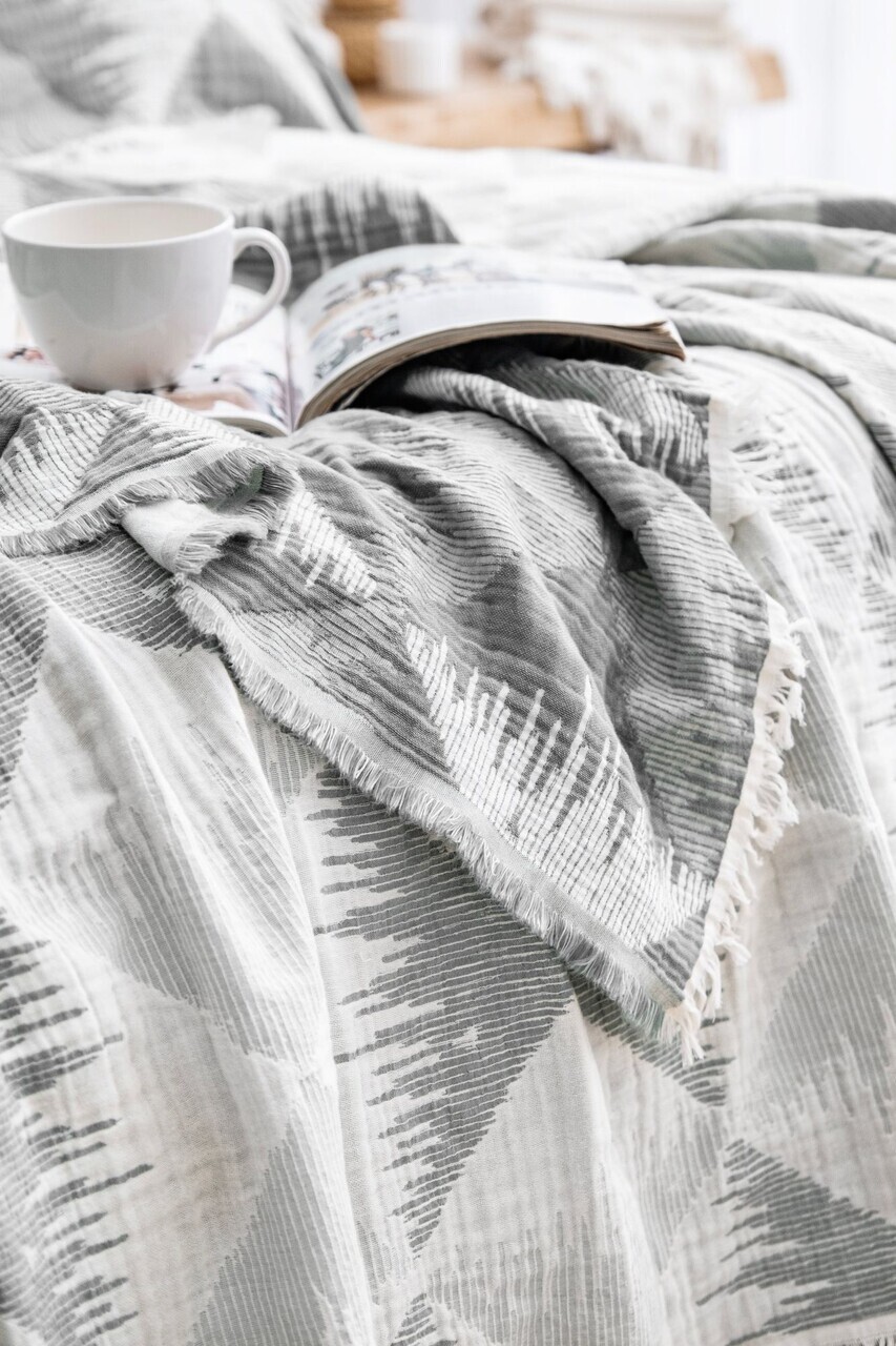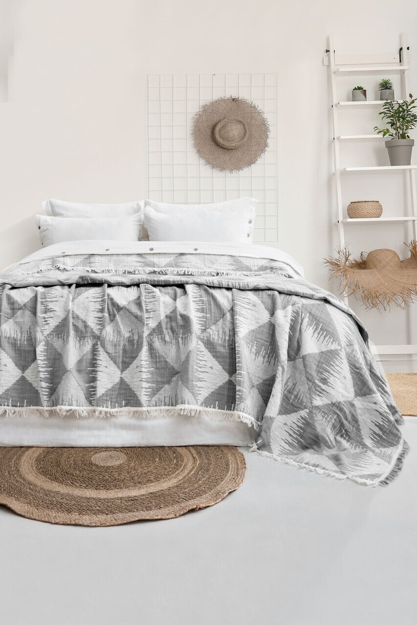 Set cuvertura de pat dubla 3 piese, L'essentiel Maison, Dolce, Bumbac , Gri