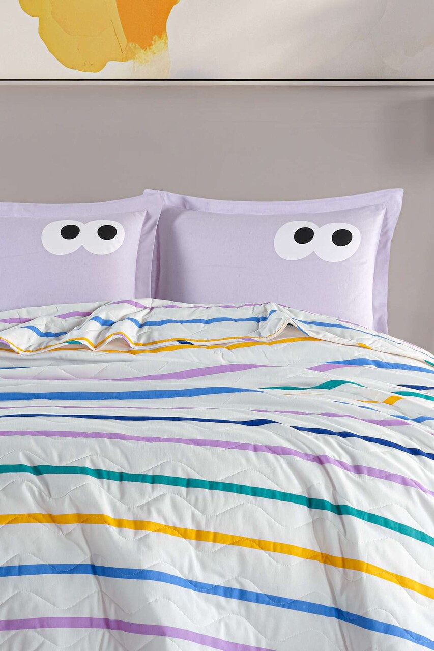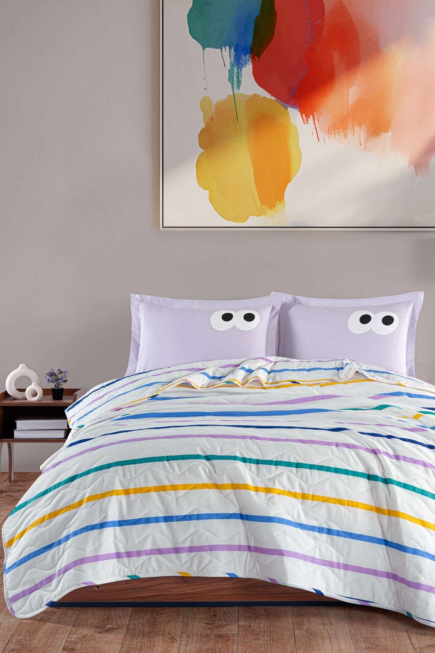 Set cuvertura de pat dubla 3 piese, L'essentiel Maison, Funny, Lila