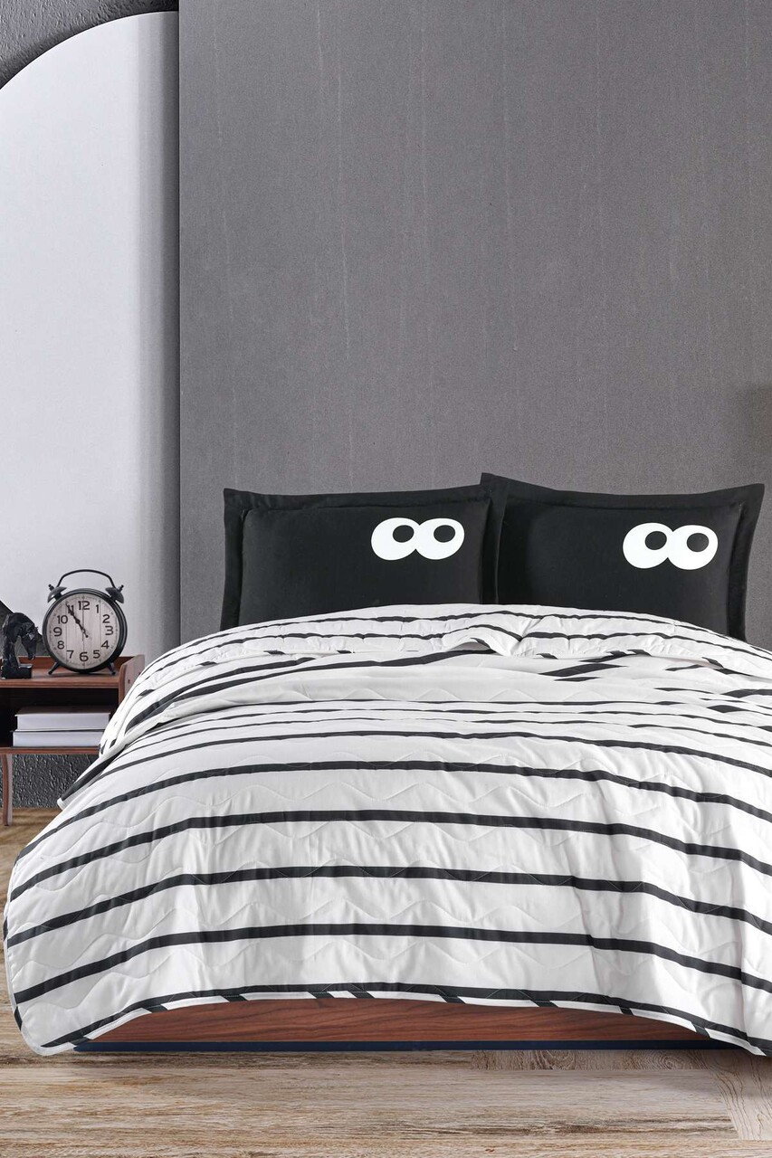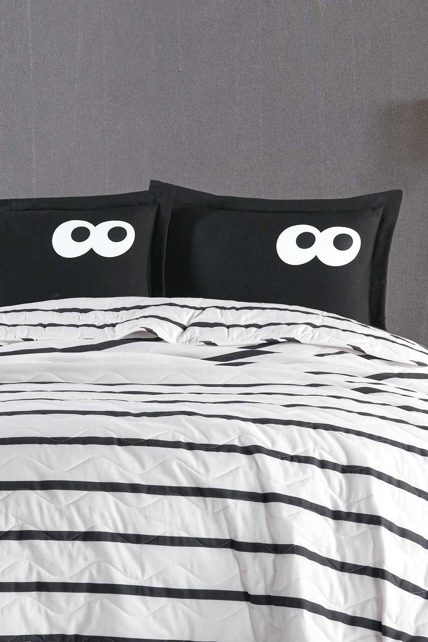Set cuvertura de pat dubla 3 piese, L'essentiel Maison, Funny, Negru