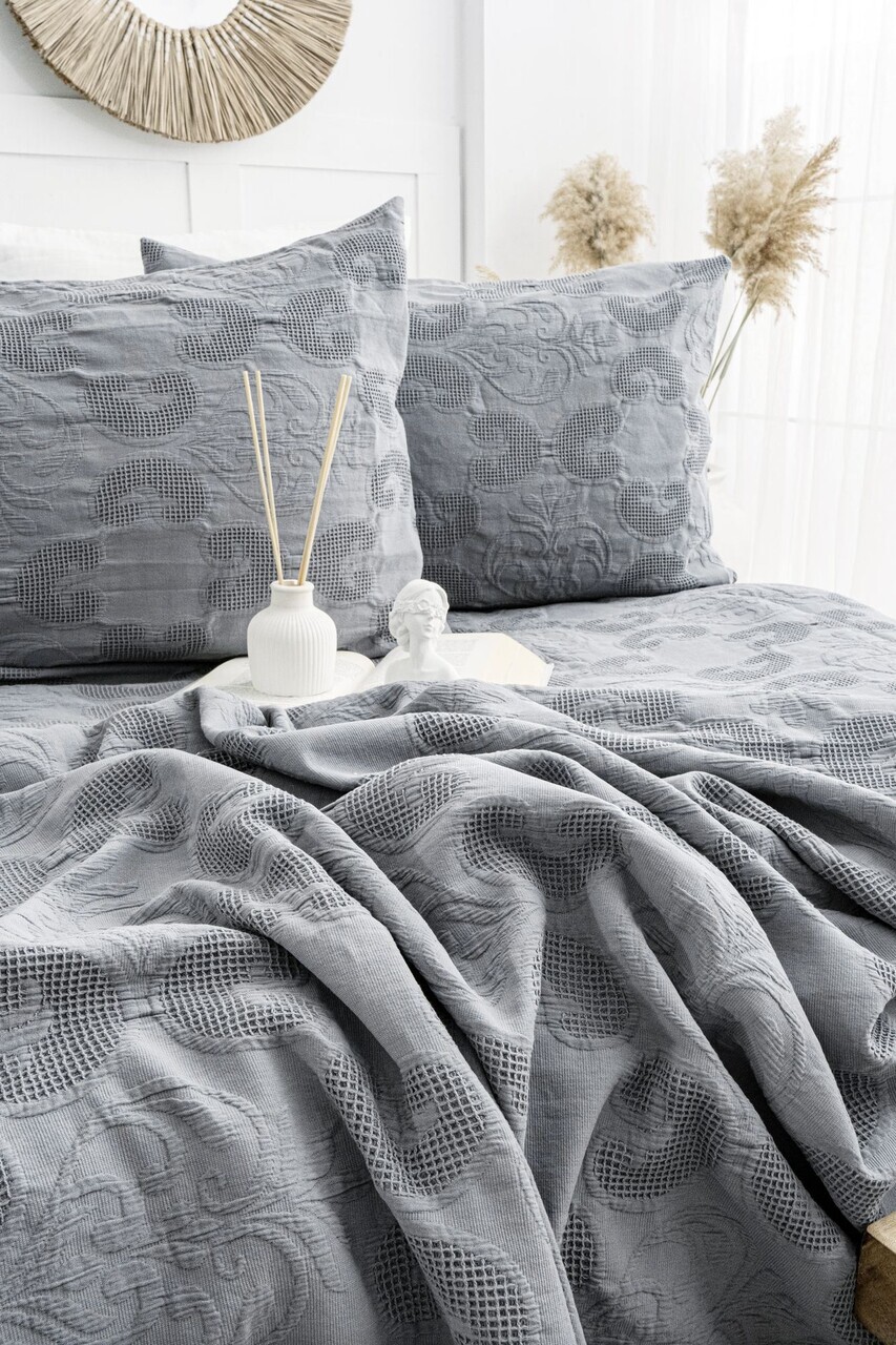 Set cuvertura de pat dubla 3 piese, L'essentiel Maison, Italo, Bumbac, Antracit