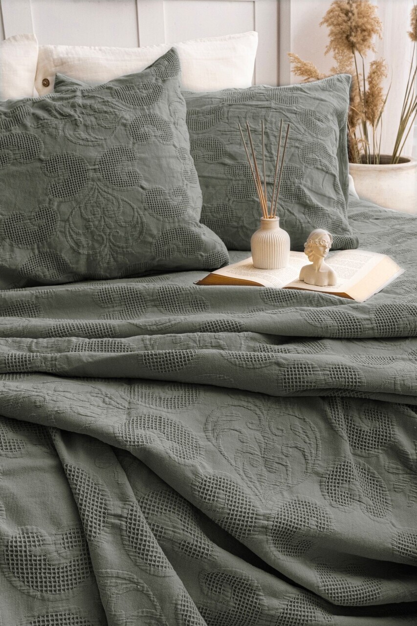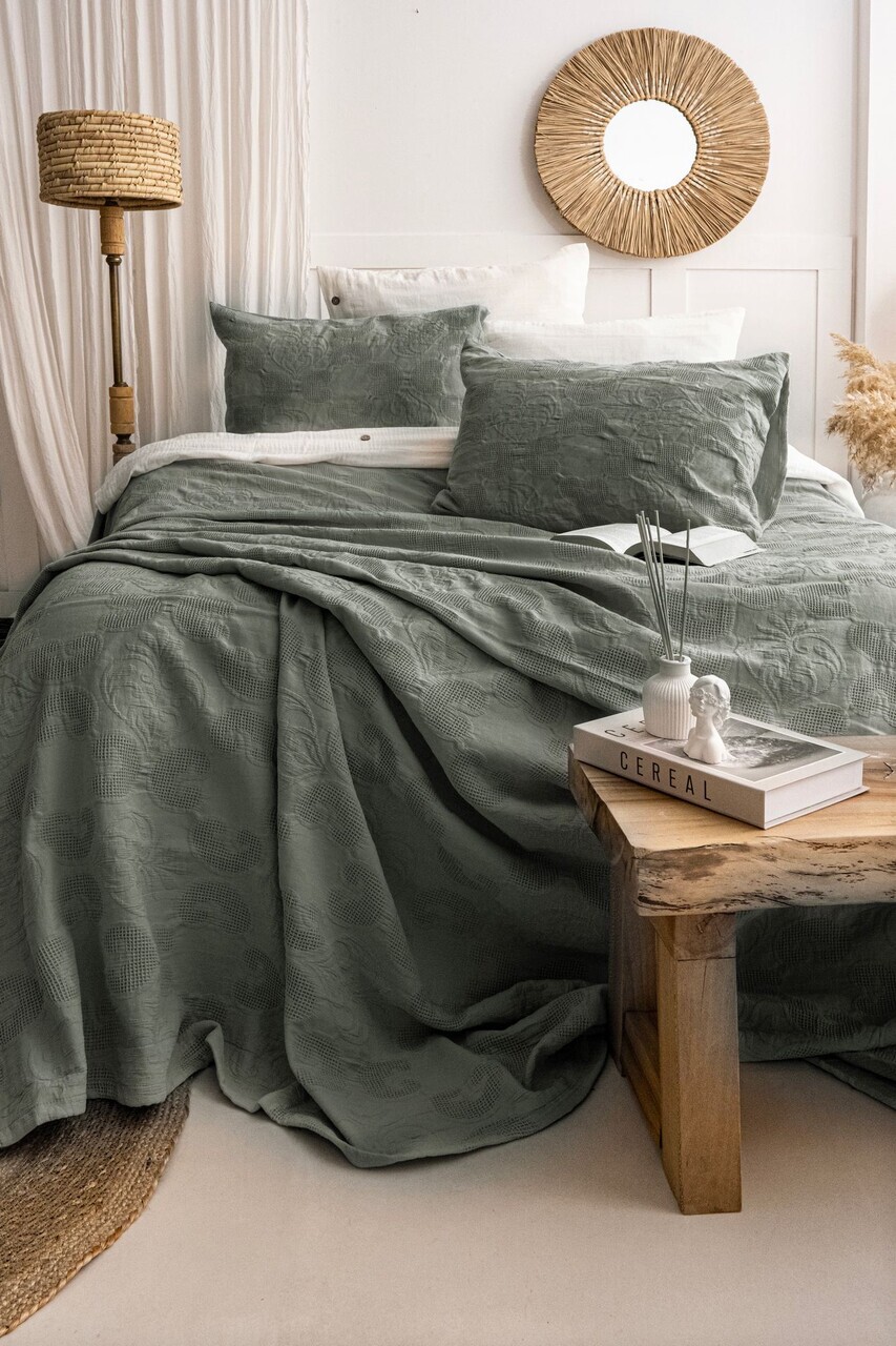 Set cuvertura de pat dubla 3 piese, L'essentiel Maison, Italo, Bumbac, Verde