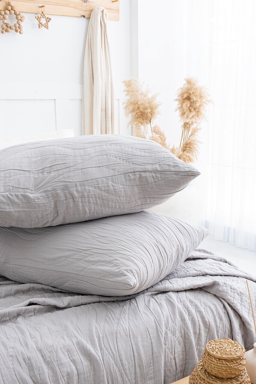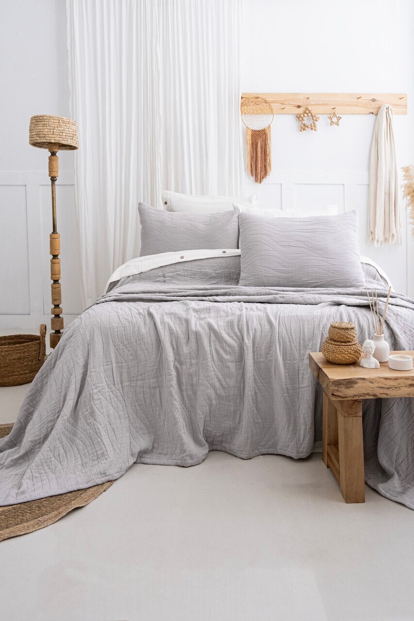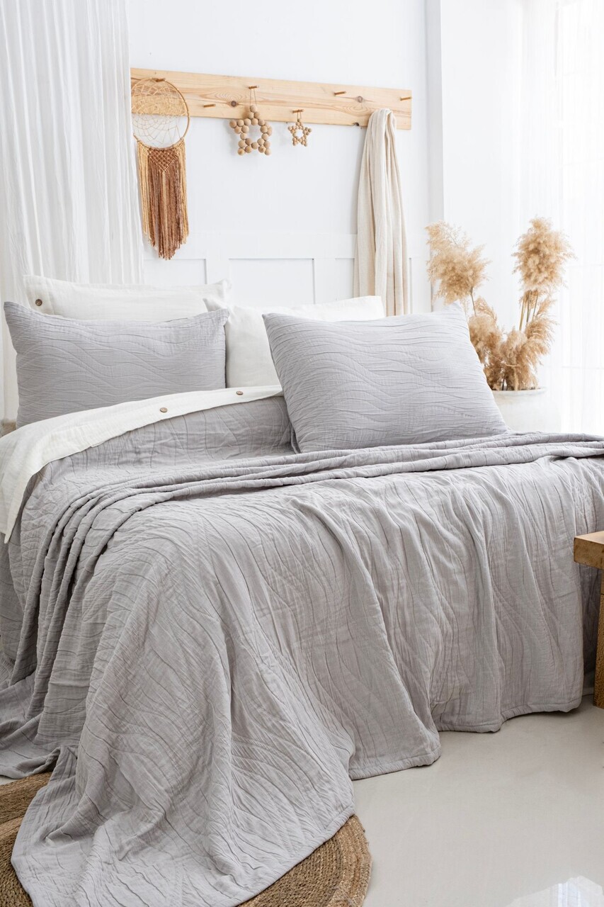 Set cuvertura de pat dubla 3 piese, L'essentiel Maison, Janna, Bumbac, Gri deschis