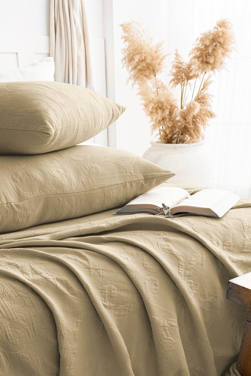 Set cuvertura de pat dubla 3 piese, L'essentiel Maison, Julia, Bumbac, Kaki