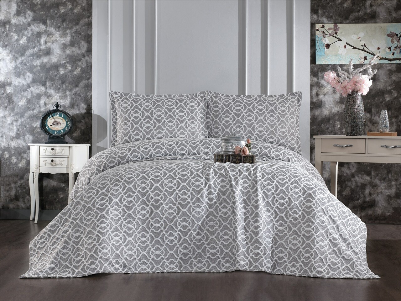 Set cuvertura de pat dubla 3 piese, L'essentiel Maison, Merlin, Gri