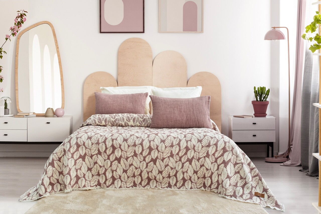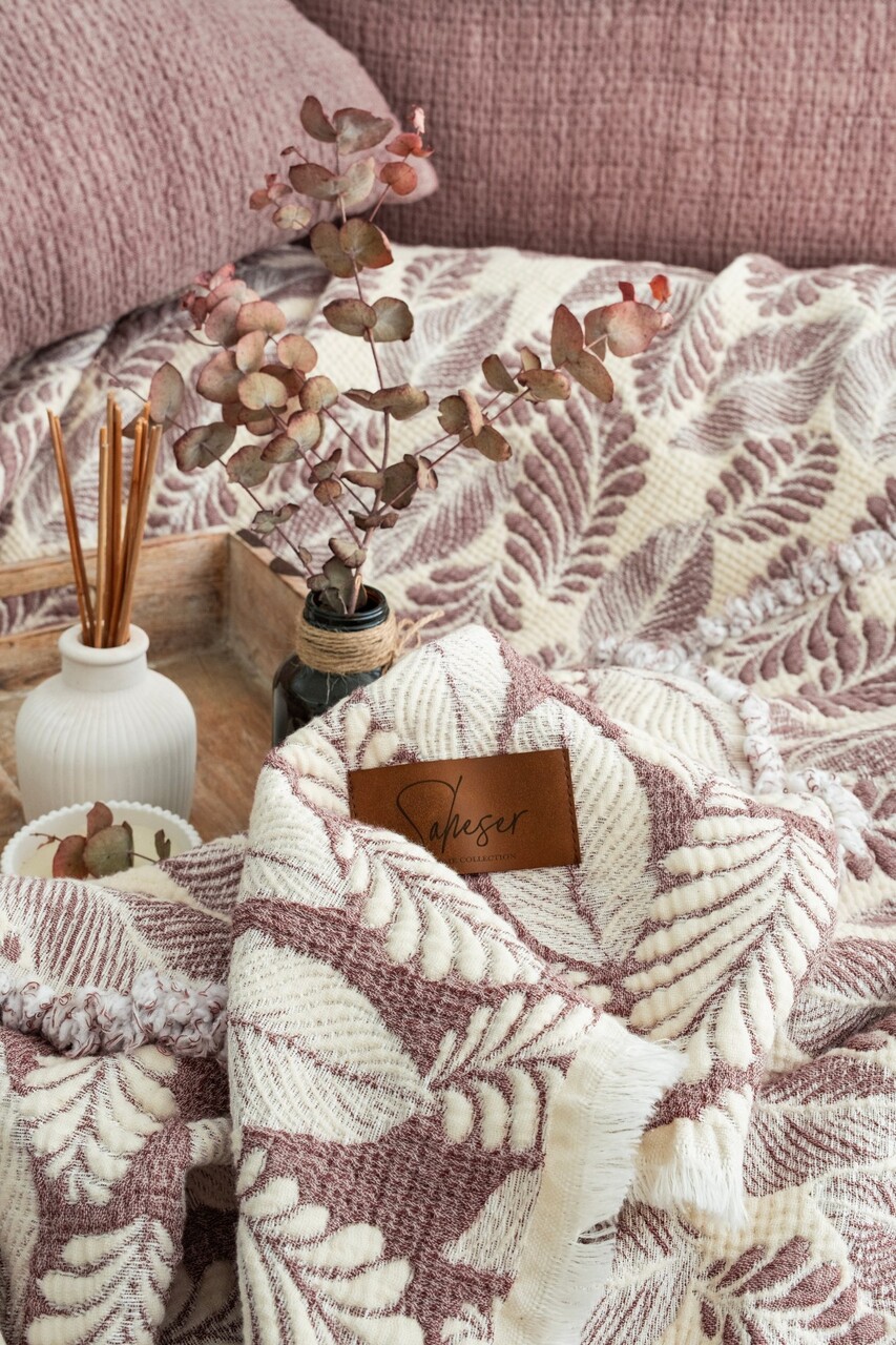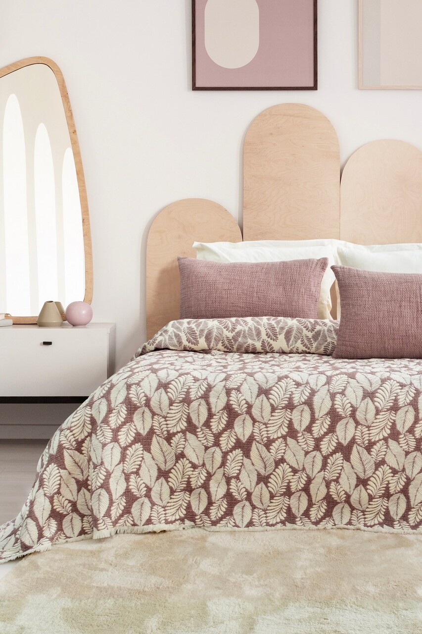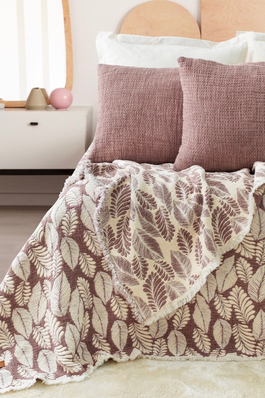 Set cuvertura de pat dubla 3 piese, L'essentiel Maison, Palmy, Mov pruna