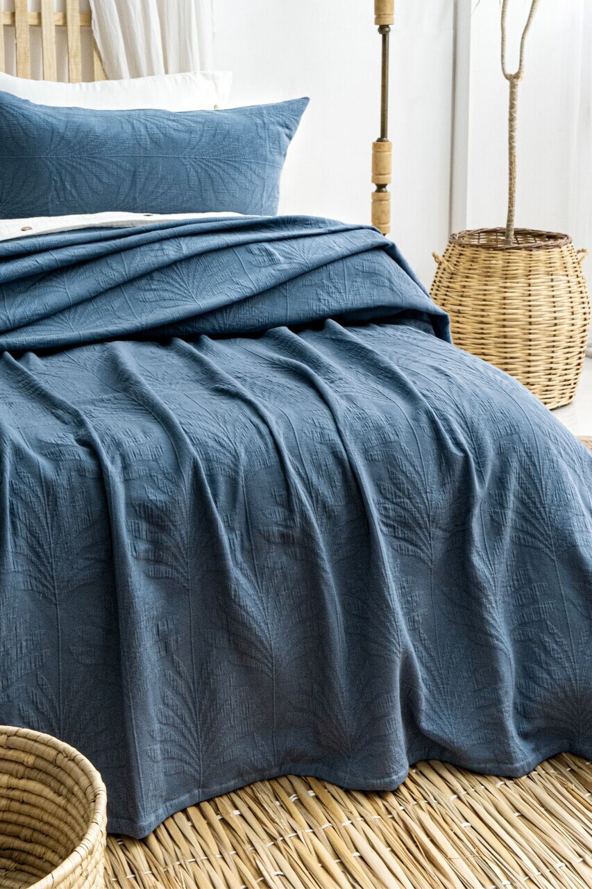 Set cuvertura de pat dubla 3 piese, L'essentiel Maison, Silvia, Bumbac, Indigo
