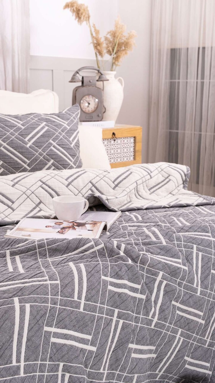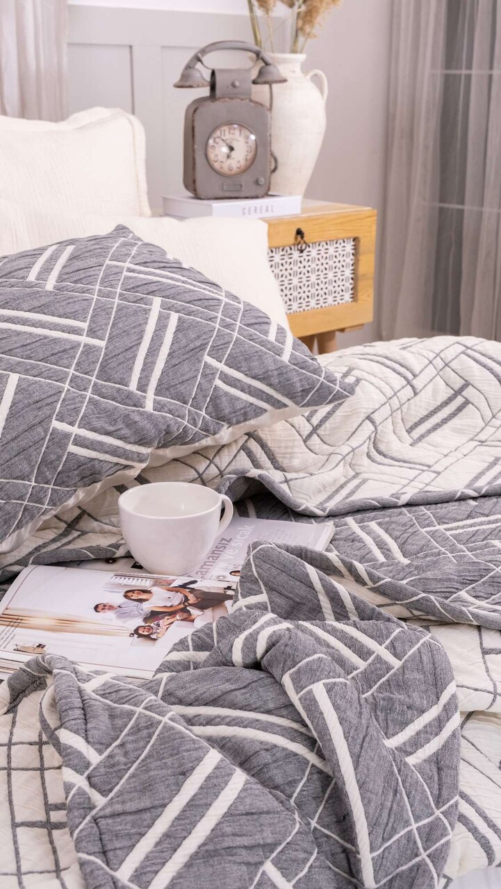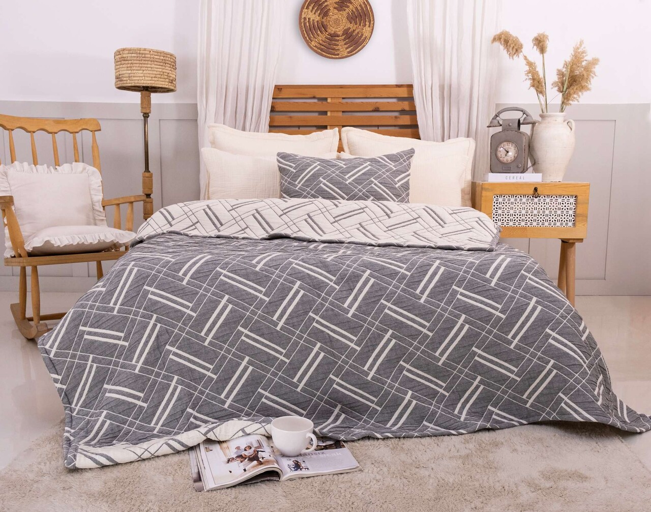 Set cuvertura de pat dubla 3 piese, L'essentiel Maison, Stella, Gri