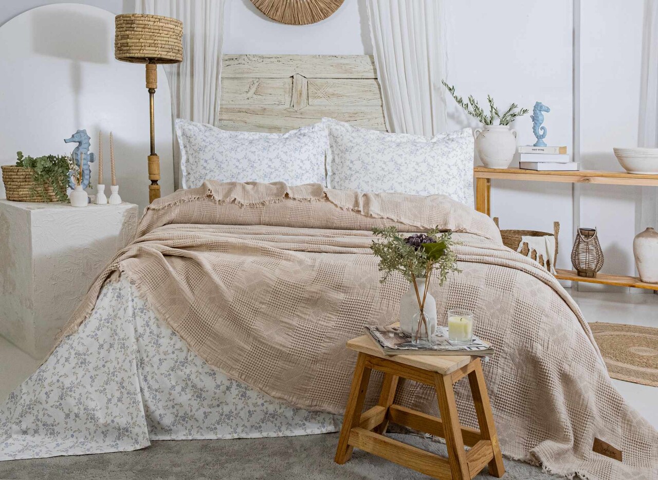 Set cuvertura de pat dubla 3 piese, L'essentiel Maison, Pamela, Bej