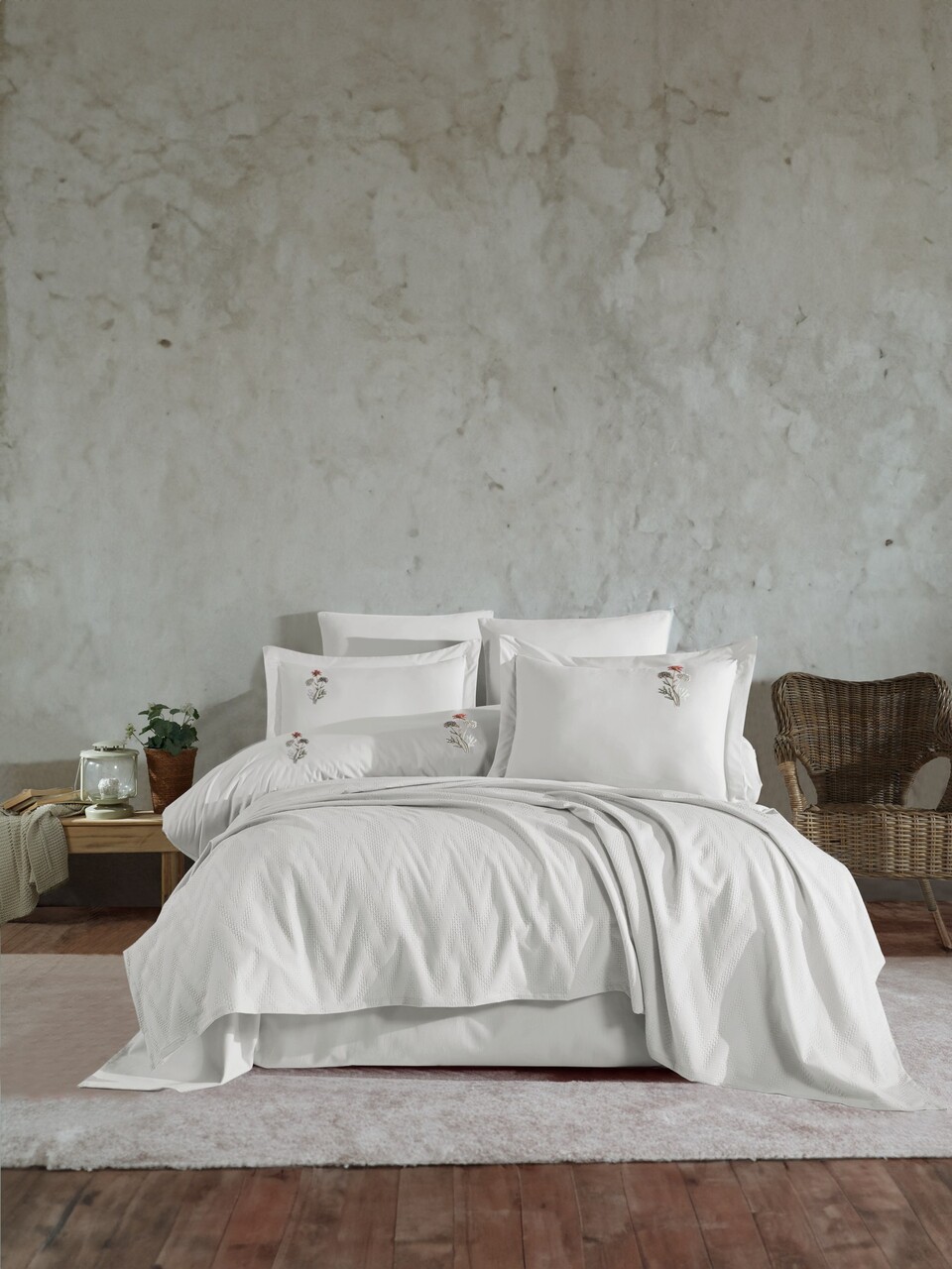 Set cuvertura de pat dubla 3 piese, Noris - Cream, Şaheser, Bumbac