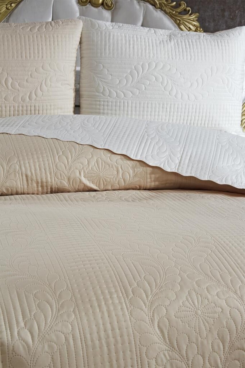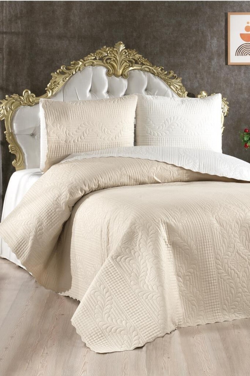 Set cuvertura de pat dubla 3 piese, Sanem - Cream, Beige, Lumea zestrei, Bumbac