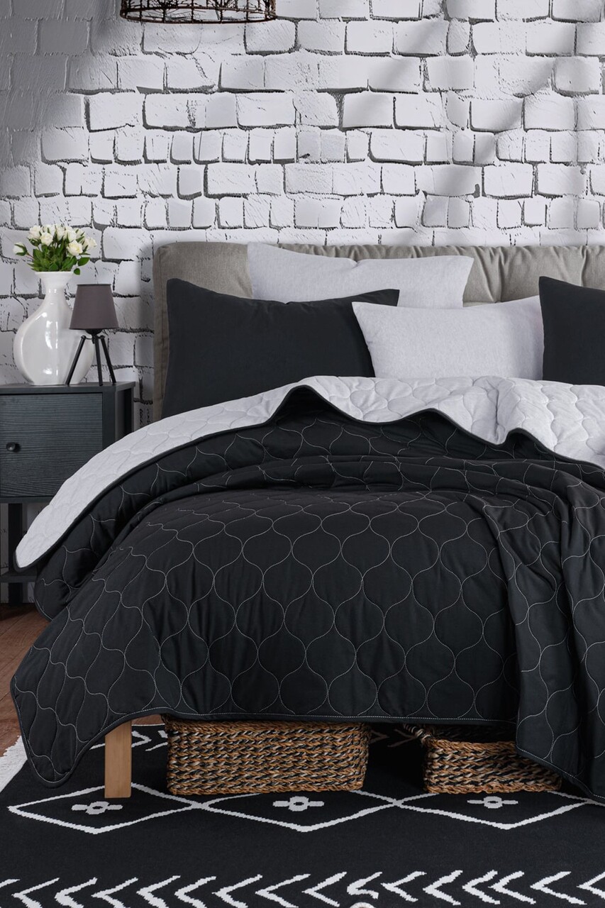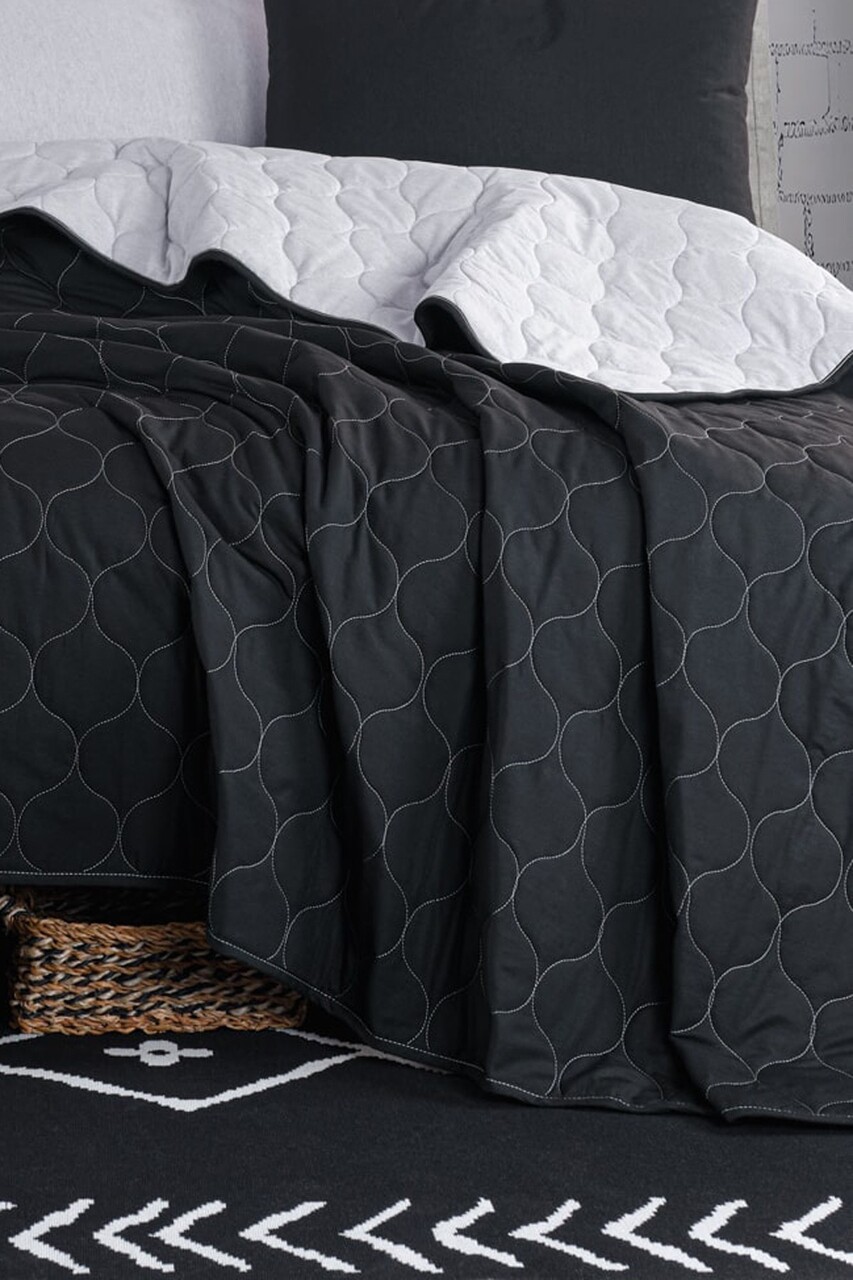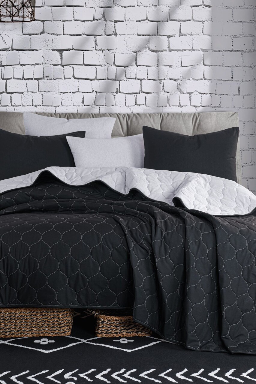 Set cuvertura de pat dubla 3 piese, Solid - Black, Grey, Eponj Home, 65% bumbac/35% poliester