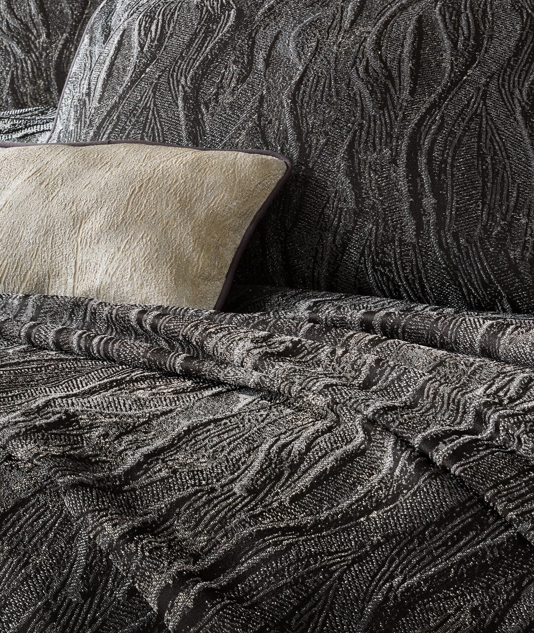 Set cuvertura de pat dubla, 4 piese, 250x260 cm, 100% poliester Jacquard, Cotton Box, Carita, antracit