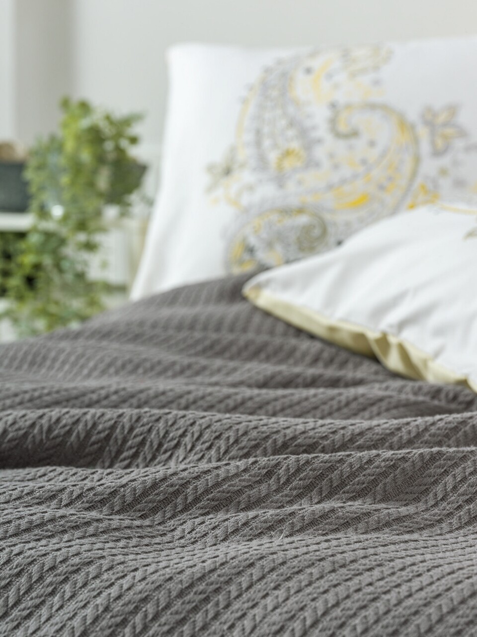 Set cuvertura de pat dubla Pique, 4 piese, 220x240 cm, 100% bumbac, Cotton Box, Lori, antracit