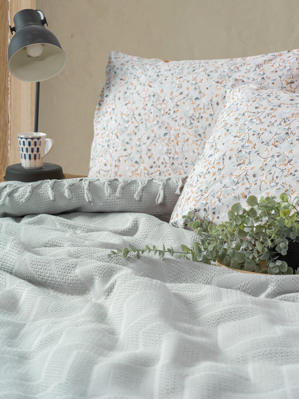 Set cuvertura de pat dubla Pique, 4 piese, 220x240 cm, 100% bumbac, Cotton Box, Origin, menta