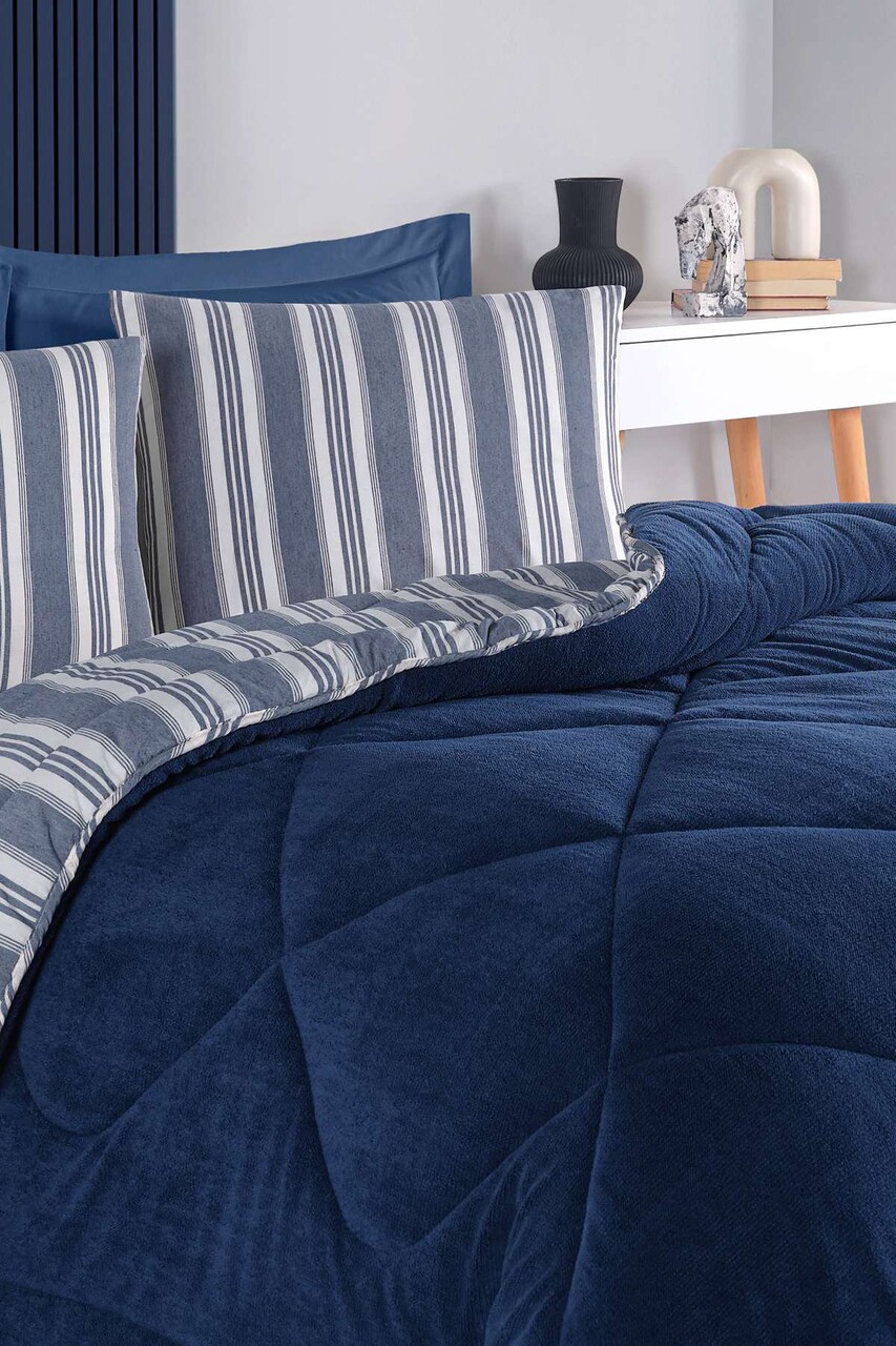 Set cuvertura dubla si perne, L'essentiel Maison, Soft Line, Albastru navy