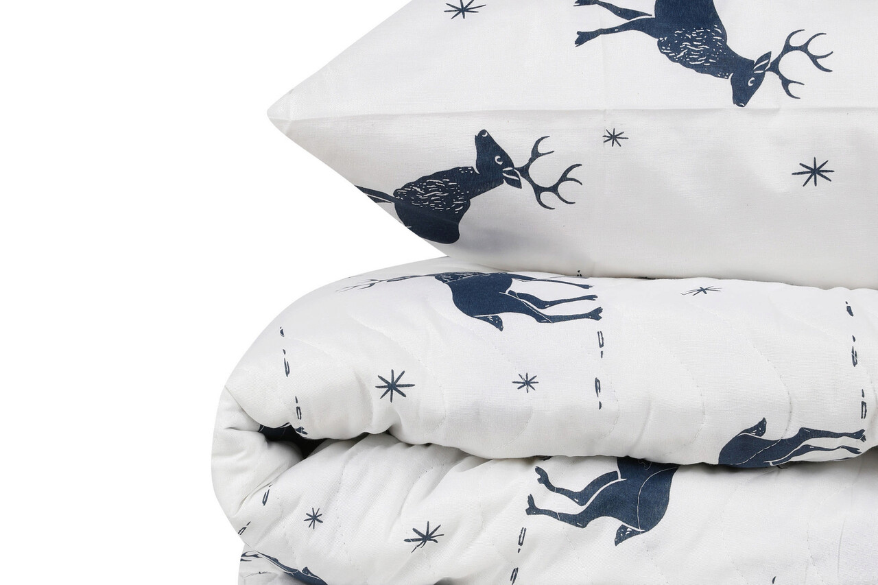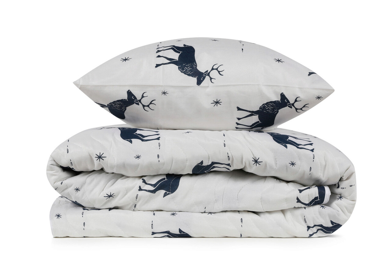 Set cuvertura matlasata dubla King (FR), 3 piese, Geyik - Dark Blue, EnLora Home, 65% bumbac/35% poliester