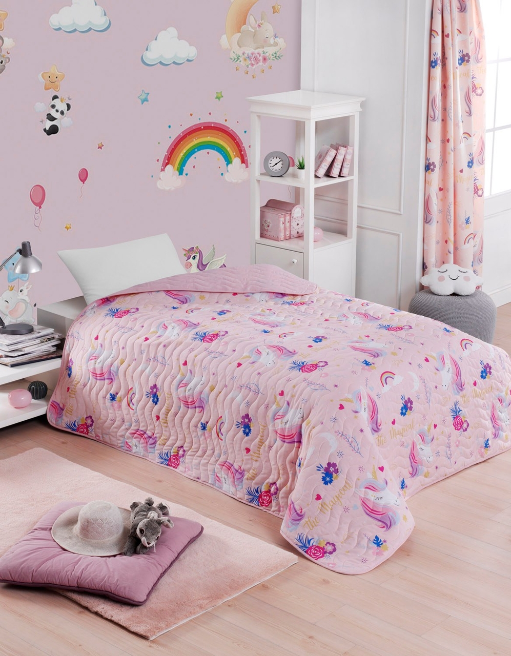 Set cuvertura matlasata dubla King (FR), 3 piese, L'essentiel Maison, Magical, 65% bumbac/35% poliester, Roz