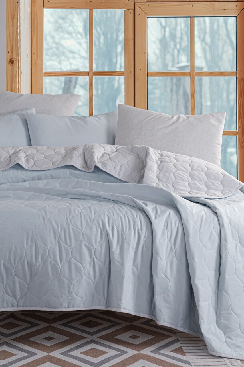 Set cuvertura matlasata dubla King (FR), 3 piese, L'essentiel Maison, Solid, Albastru deschis / Gri