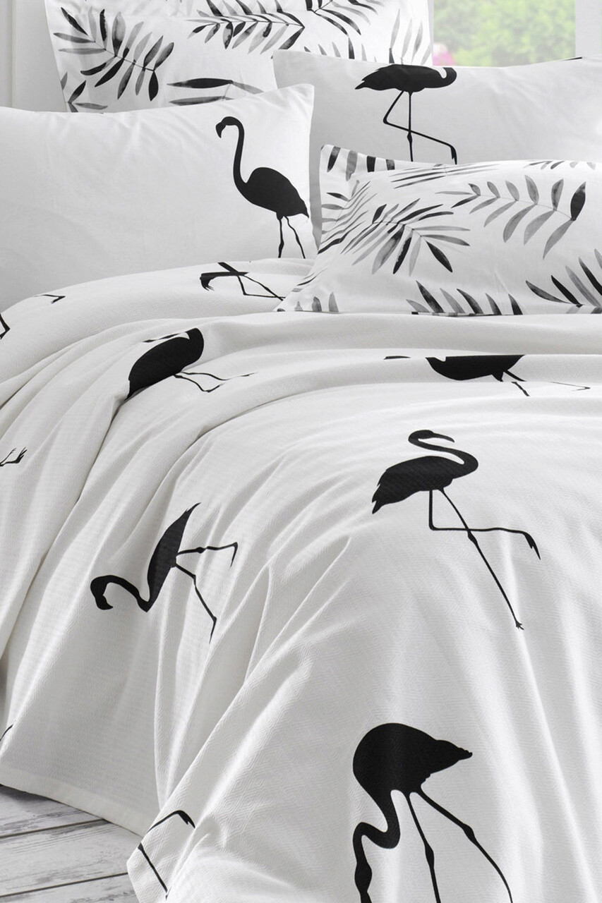 Set cuvertura pique dubla 3 piese, Hope - Black, EnLora Home, Bumbac