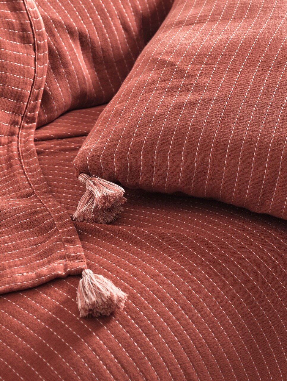 Set cuvertura pique dubla, Costa - Tile Red, Şaheser, Bumbac