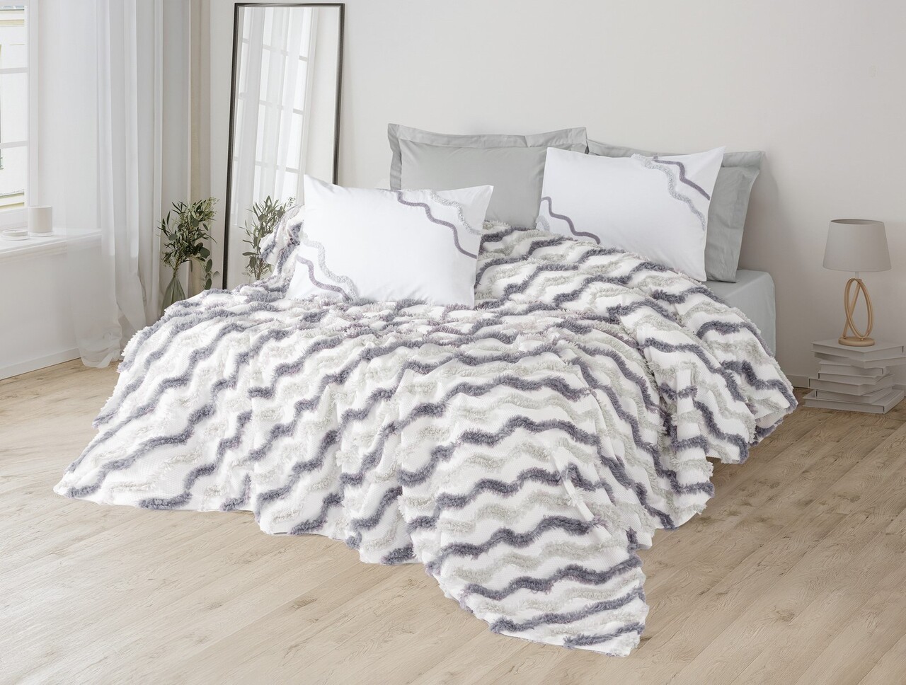 Set cuvertura pique dubla, Eldon - Grey, Cotton Box, Poliester