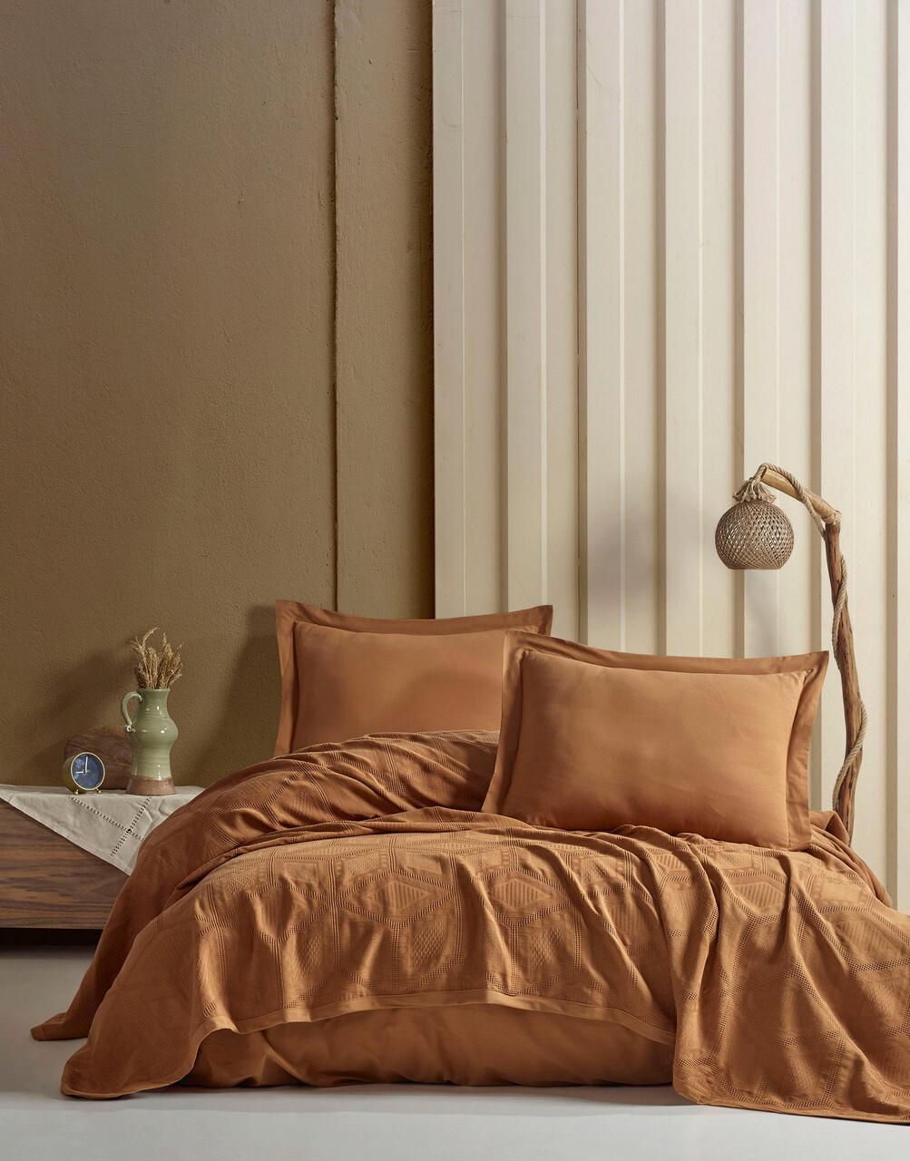 Set cuvertura pique dubla, Gorian - Mustard, Şaheser, Bumbac Ranforce