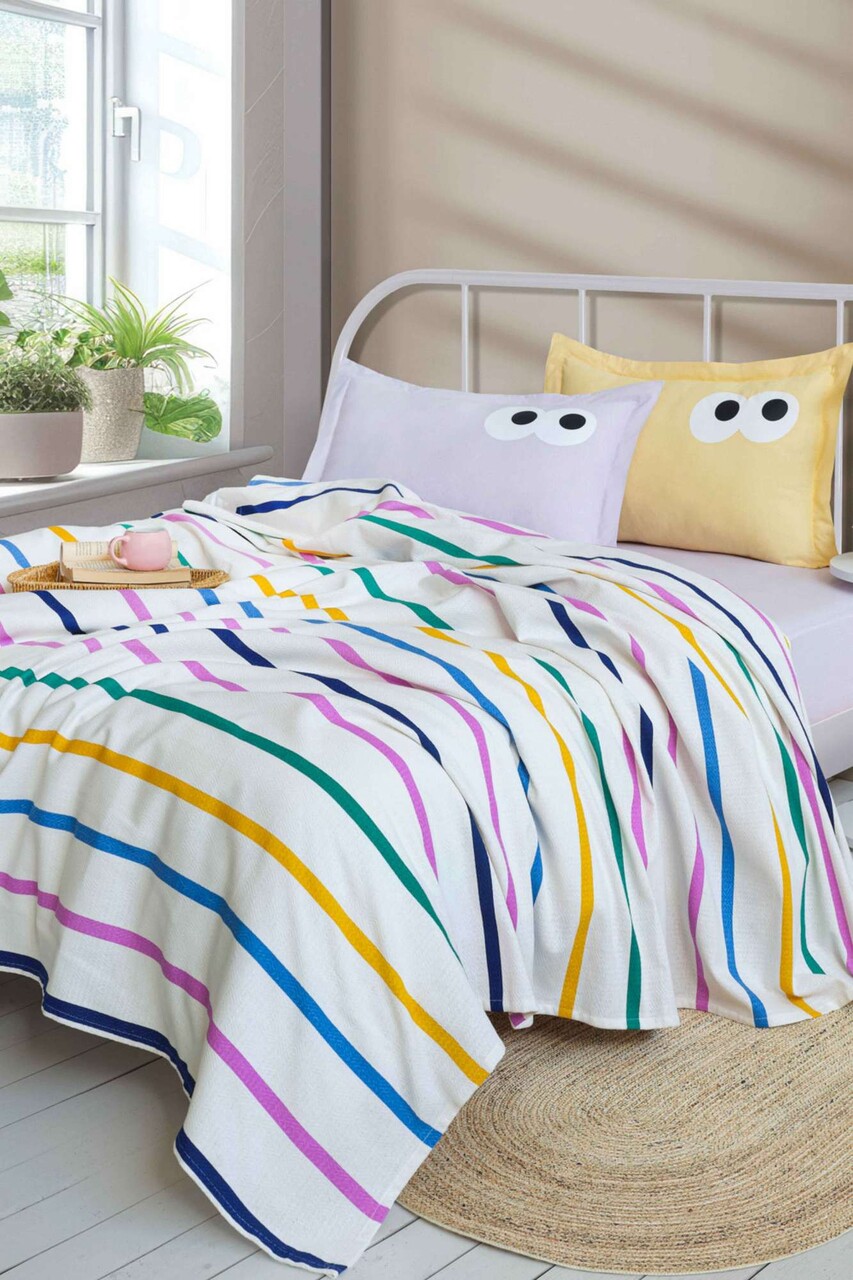 Set cuvertura pique dubla, L'essentiel Maison, Funny, Galben / Liliac