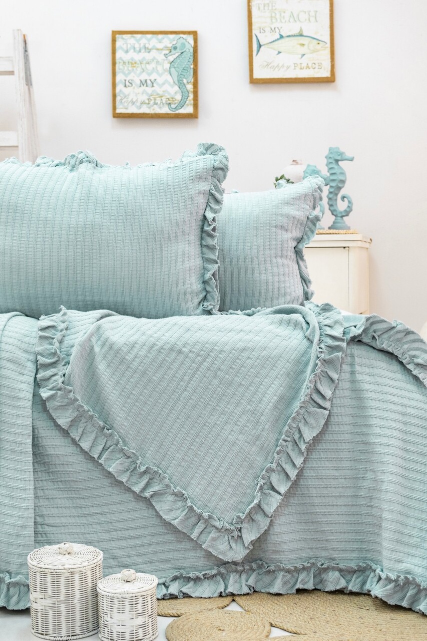 Set cuvertura pique dubla, L'essentiel Maison, Martha, Verde menta