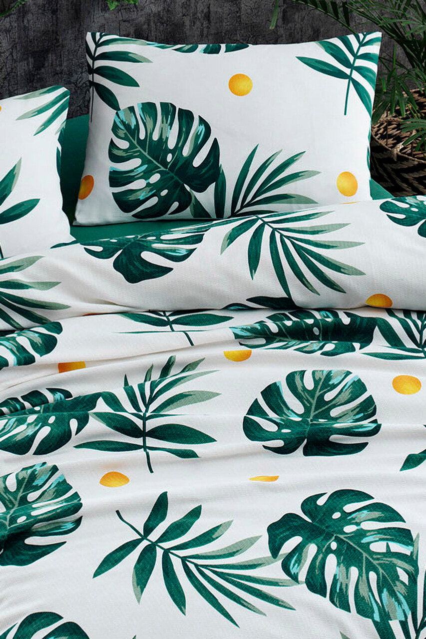 Set cuvertura pique dubla, L'essentiel Maison, Monstera, Verde / Alb / Galben