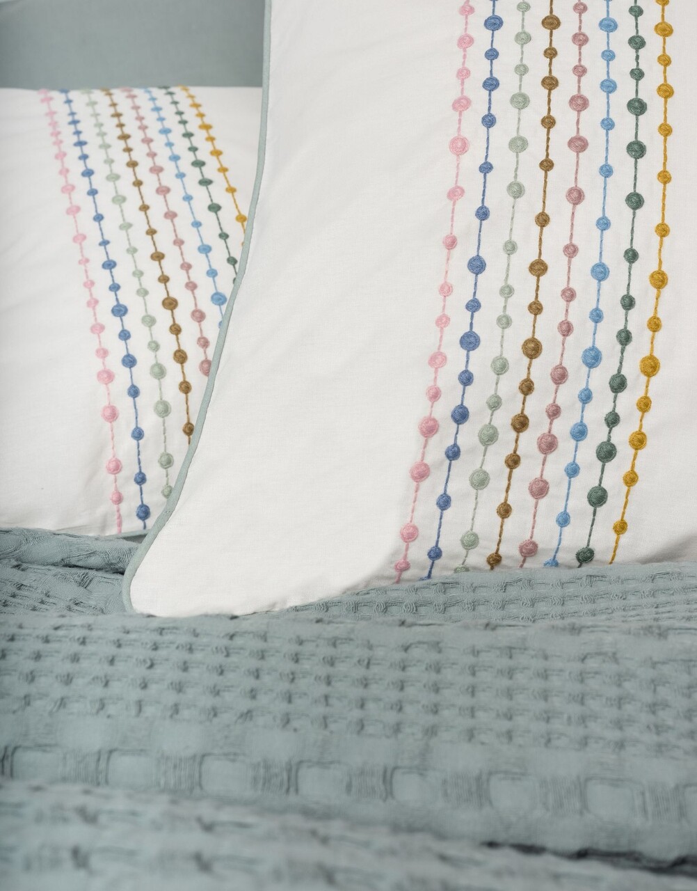 Set cuvertura pique dubla, L'essentiel Maison, Pebble, Verde menta