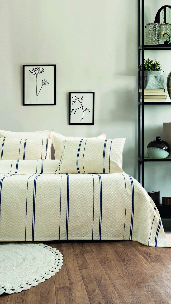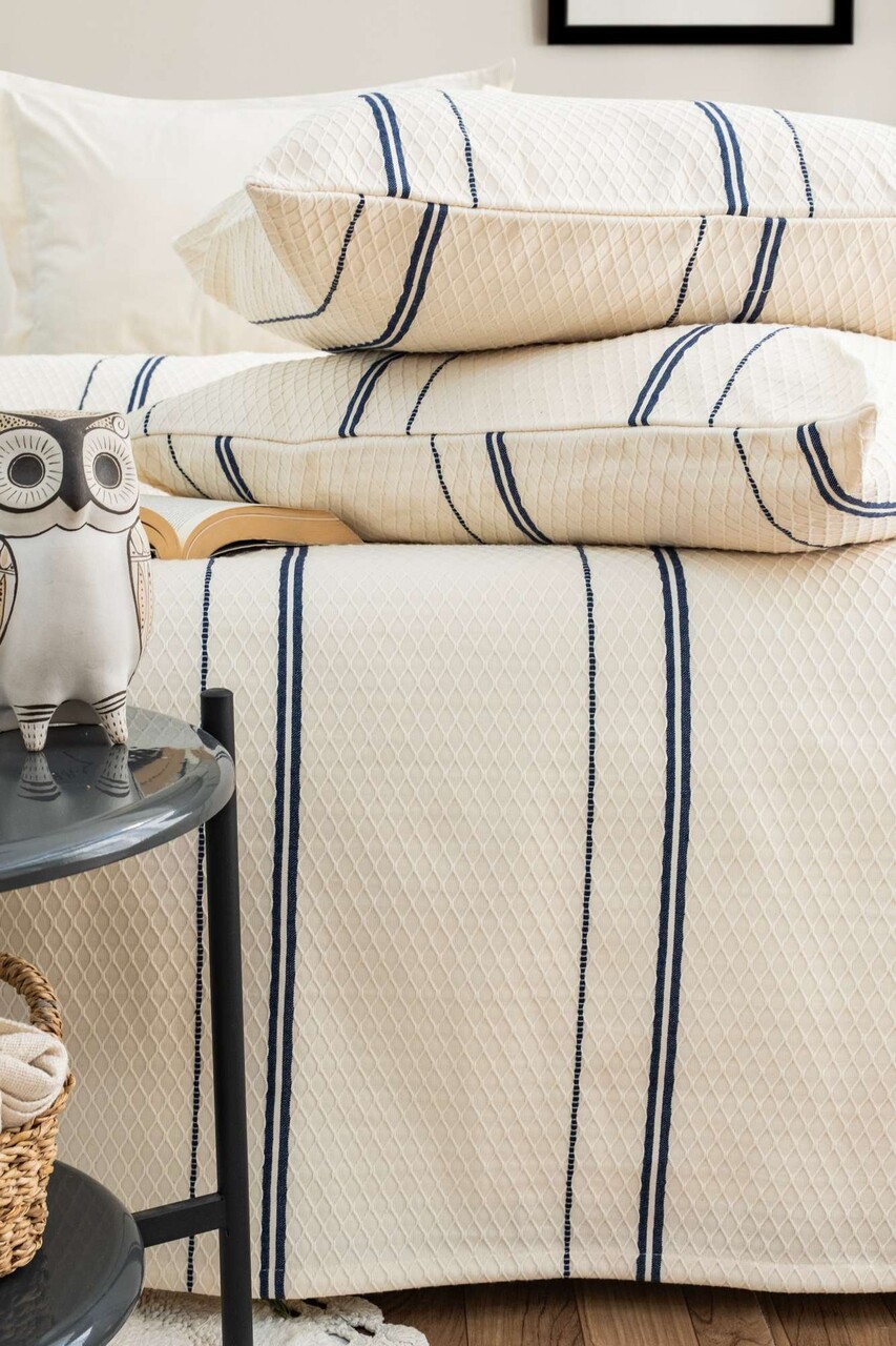 Set cuvertura pique dubla, L'essentiel Maison, Ruby, Albastru inchis