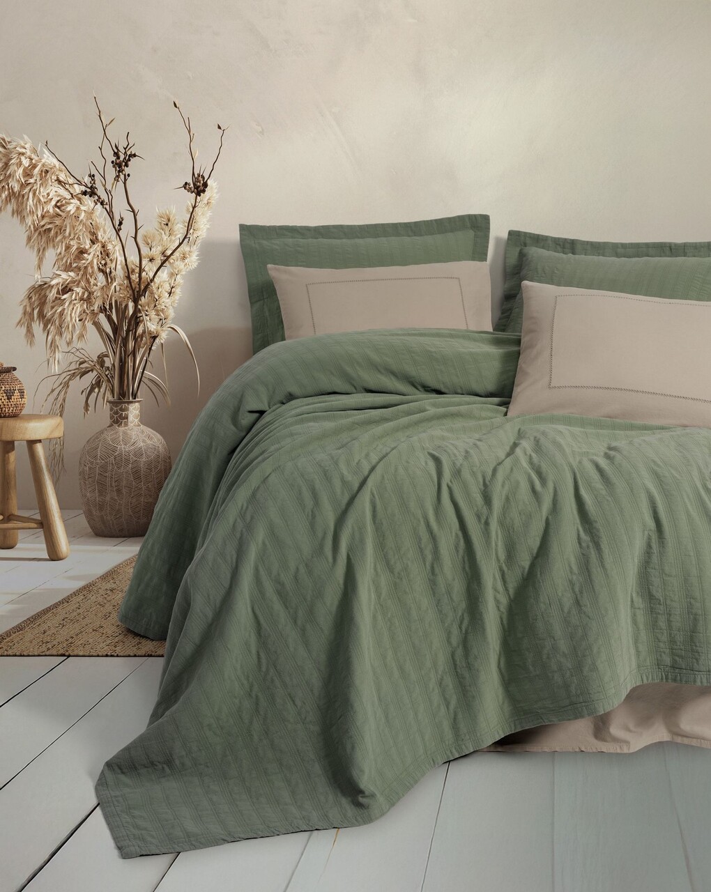 Set cuvertura pique dubla, L'essentiel Maison, Vilo, Bumbac, Verde