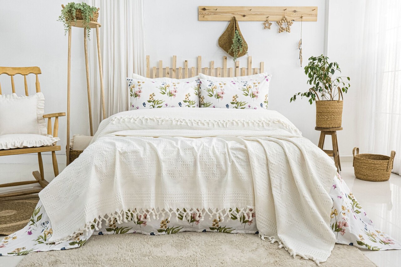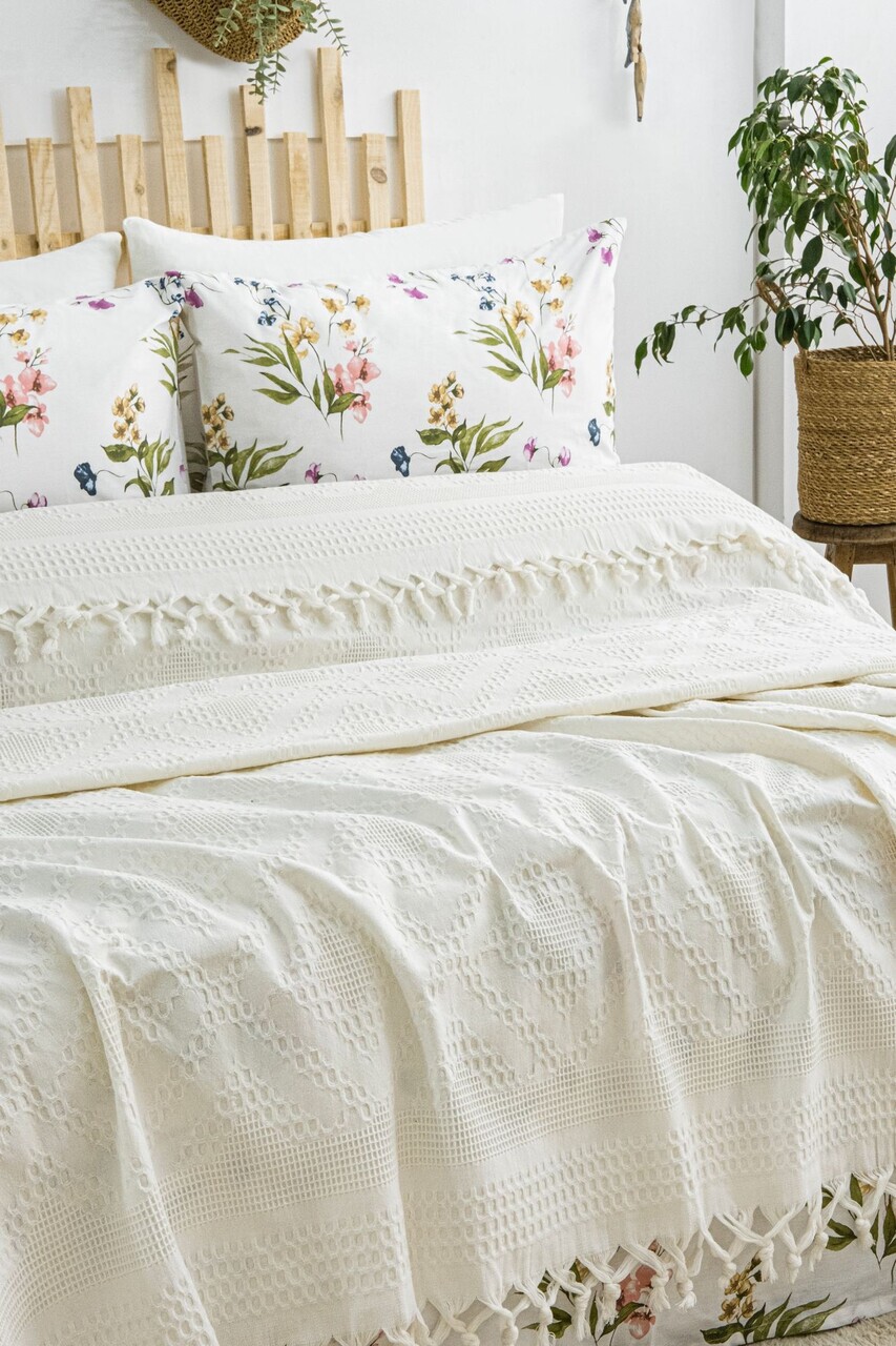 Set cuvertura pique dubla, L'essentiel Maison, Viola, Bumbac, Crem