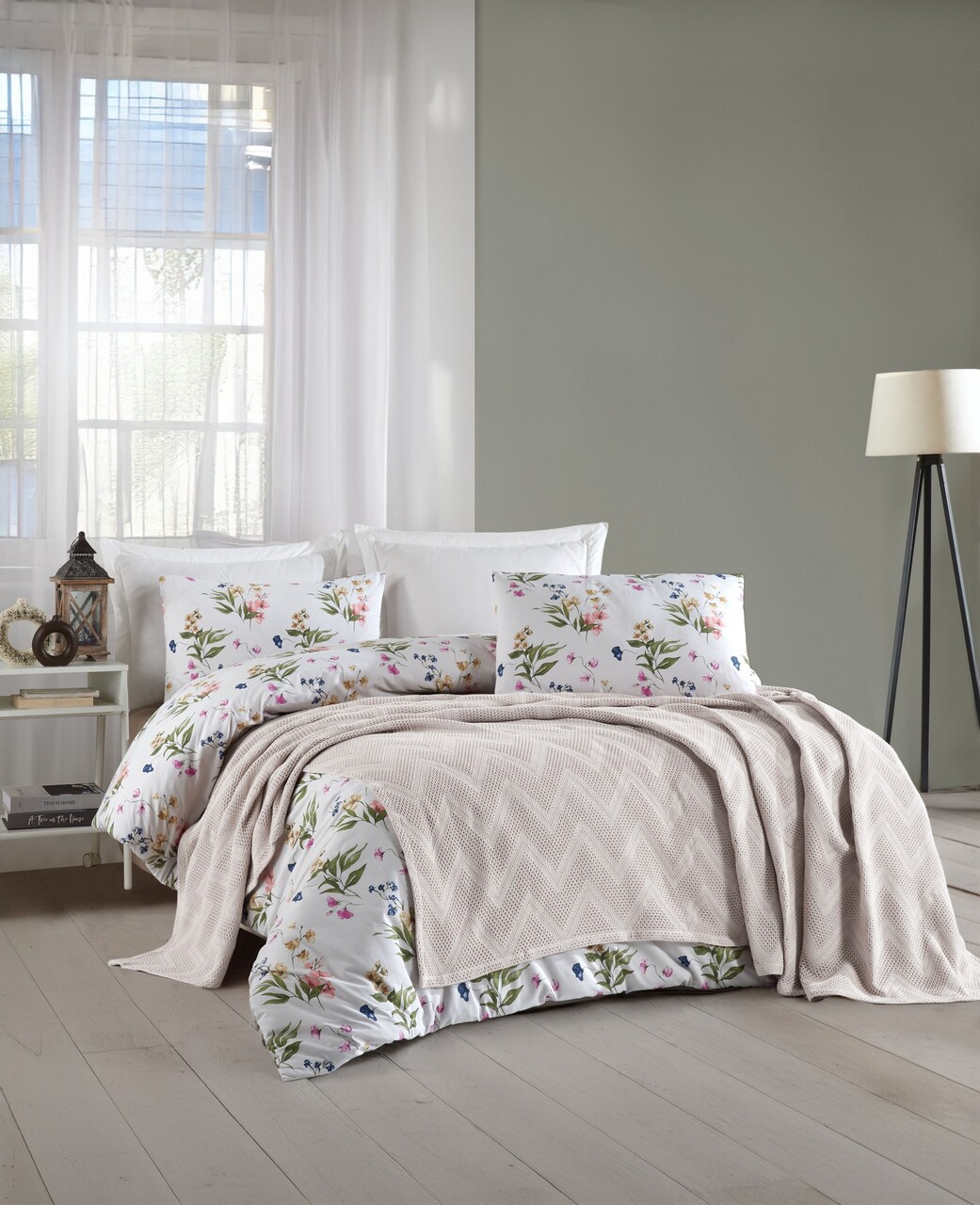 Set cuvertura pique dubla, Zigzag - Light Grey, Şaheser, Bumbac