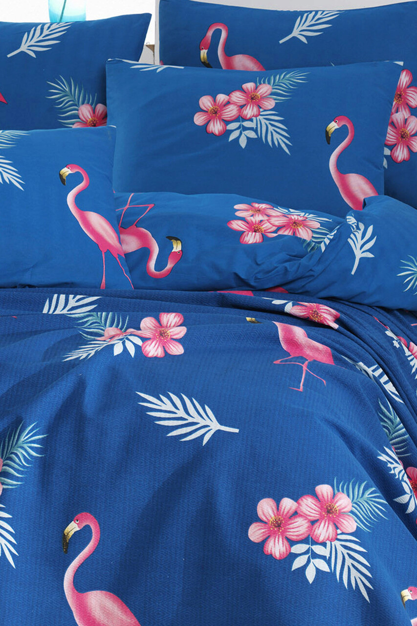 Set cuvertura pique Single 2 piese, Flemenco - Parlament Blue, EnLora Home, Bumbac
