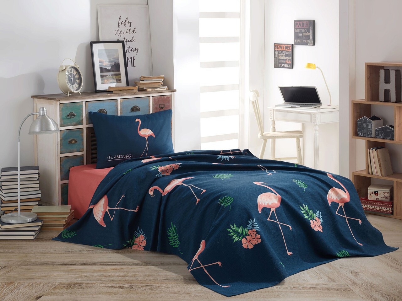 Set cuvertura pique Single, L'essentiel Maison, Big Filamin, Bumbac, Dark Blue / Pink / Green / White