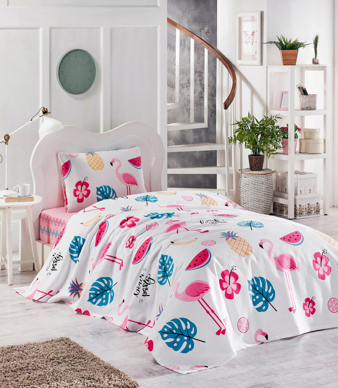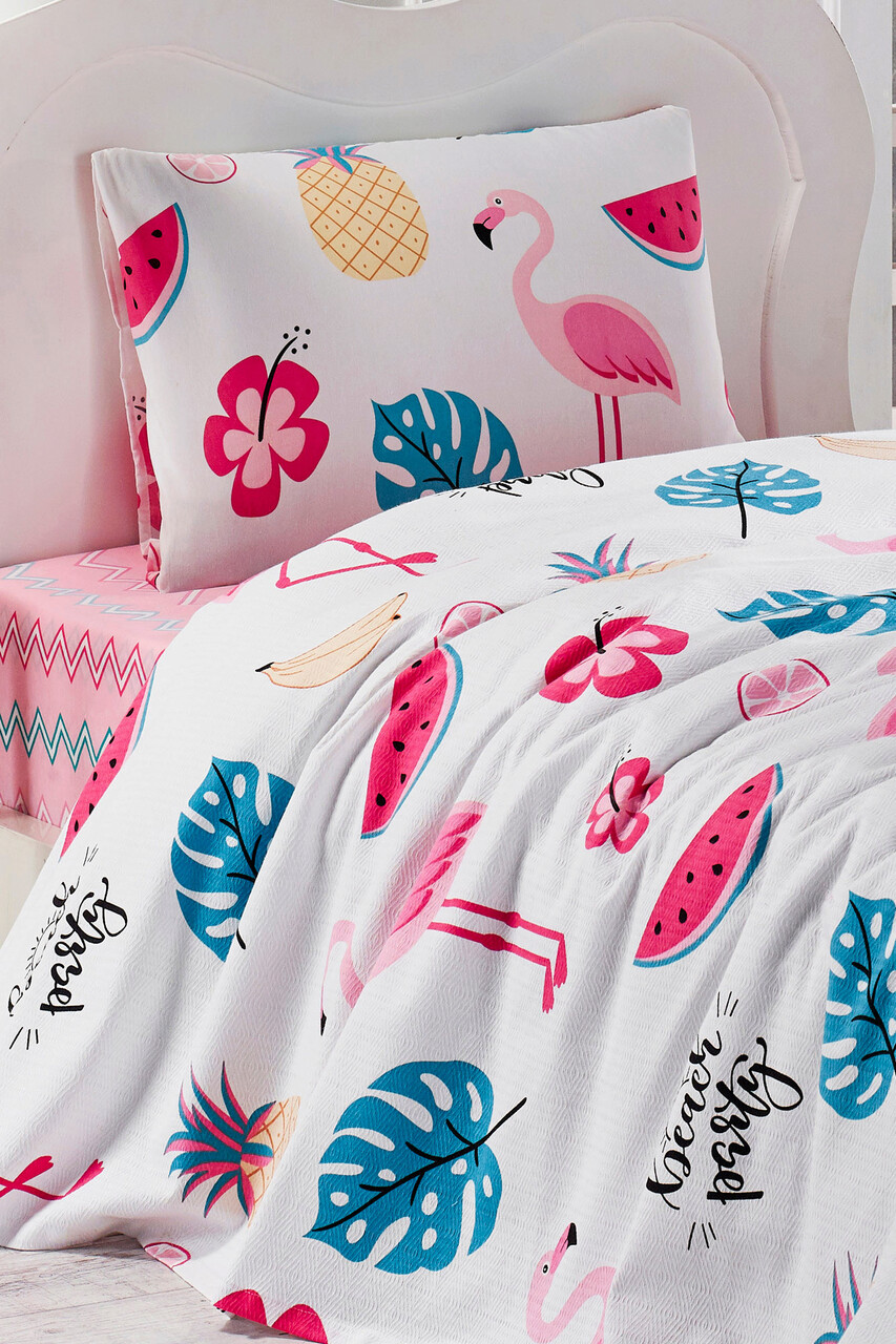 Set cuvertura pique Single, L'essentiel Maison, Kokteyl, Alb / Albastru / Roz / Galben