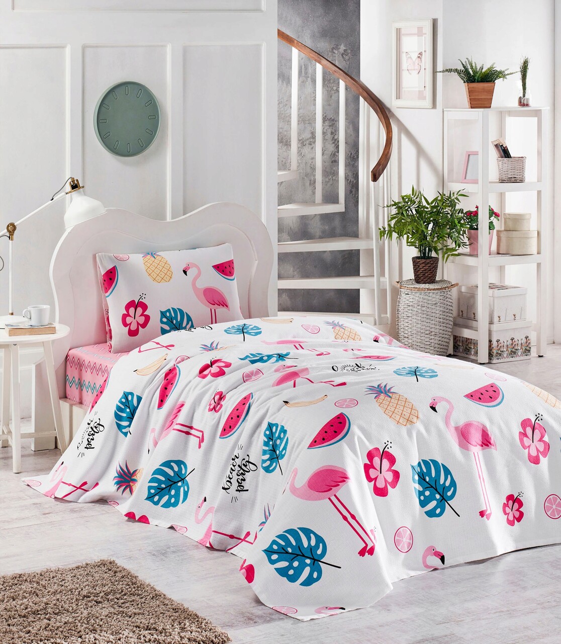 Set cuvertura pique Single, L'essentiel Maison, Kokteyl, Bumbac, White / Pink / Blue / Black