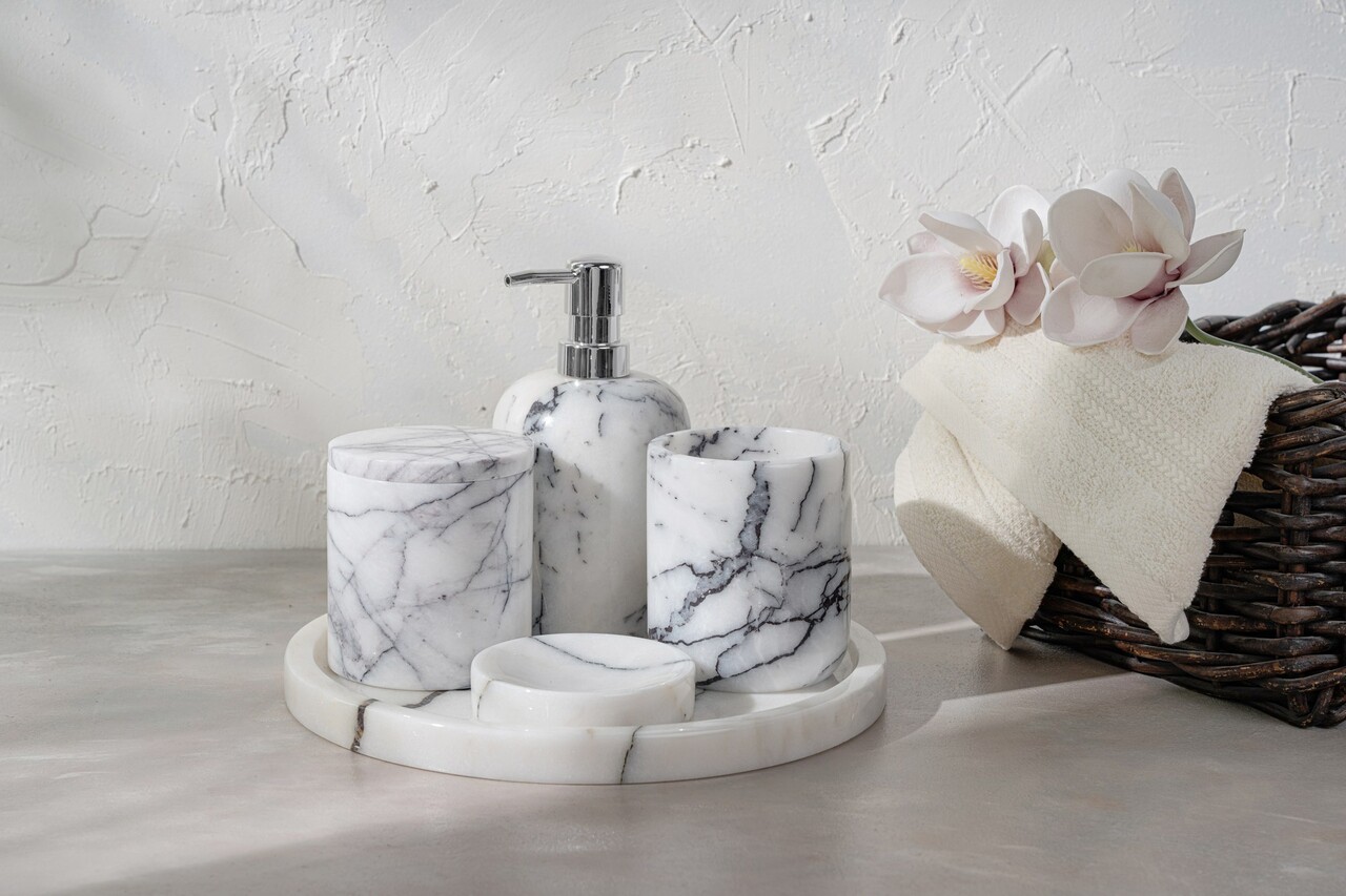 Set de baie, Arte Del Marmo, MAR07050302D, Marmura Sicilia lila, Alb