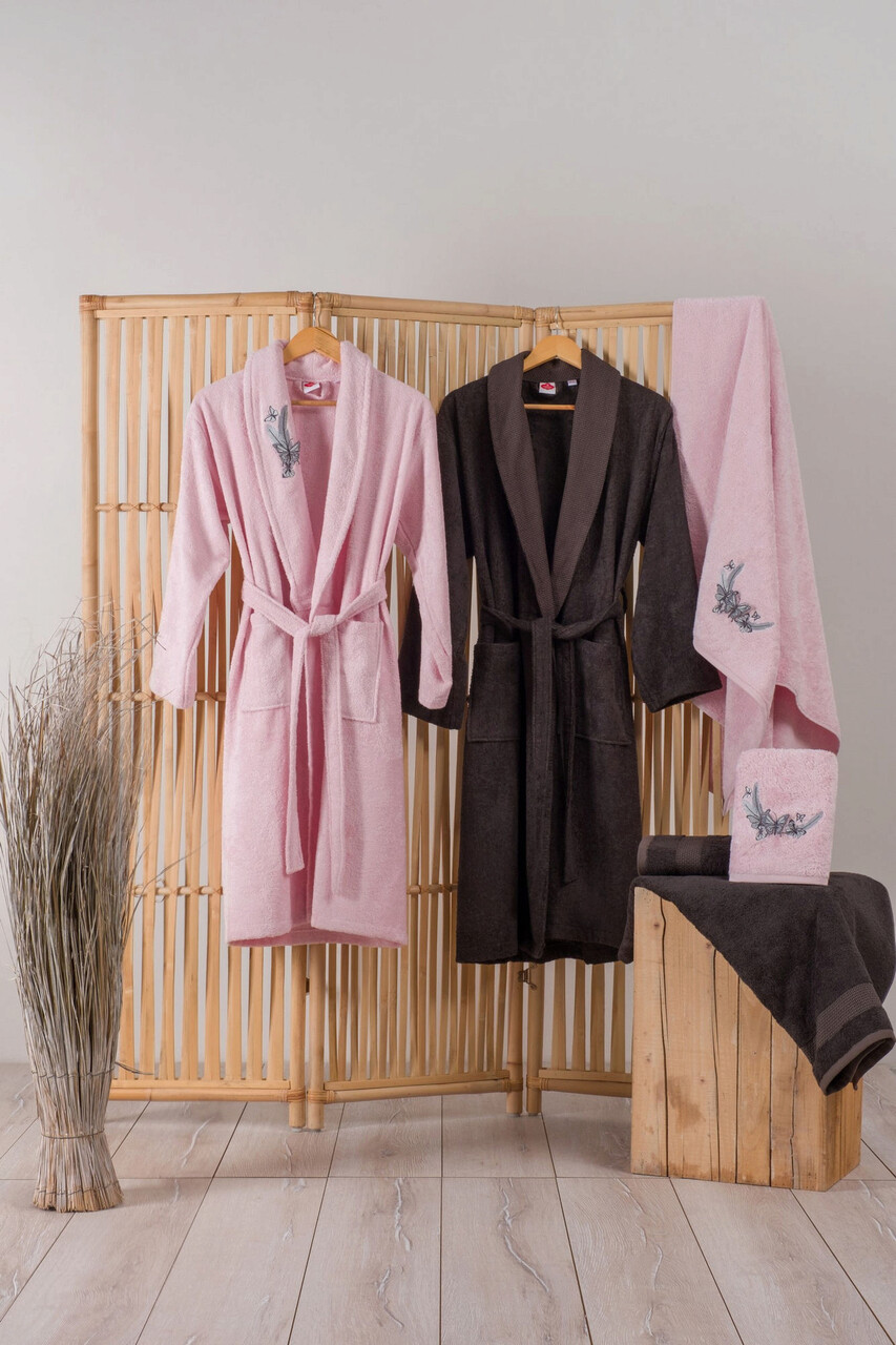 Set de baie Family, Cotton Box, 3D, 40% Bambus/60% Bumbac, Roz / Antracit