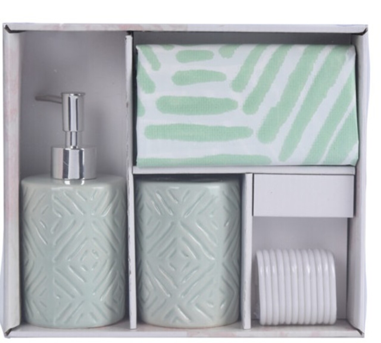 Set de baie Geometric, 4 piese, dolomit, verde