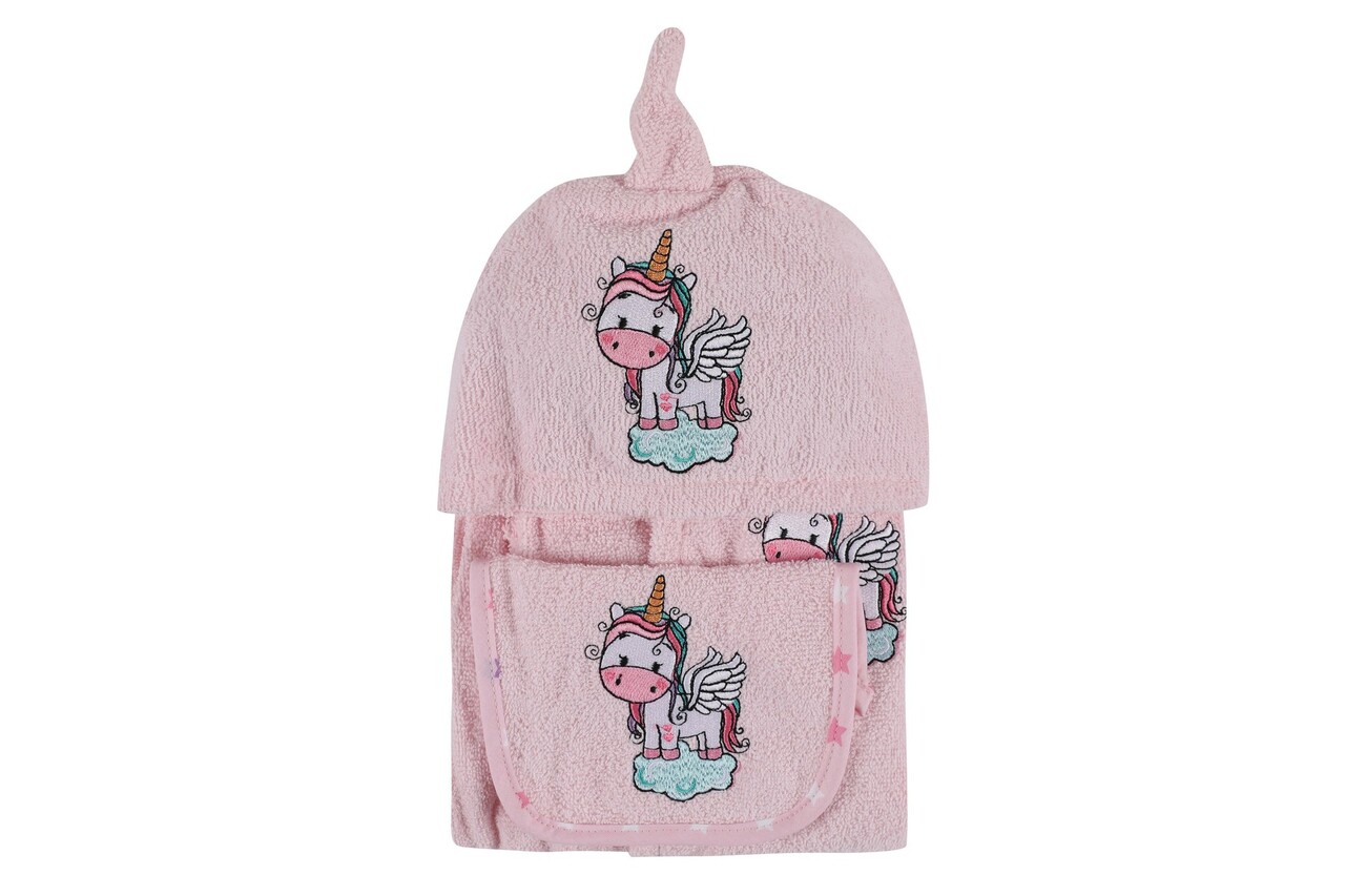 Set de baie pentru bebeluși, Cotton Box, Unicorn, Bumbac, Roz