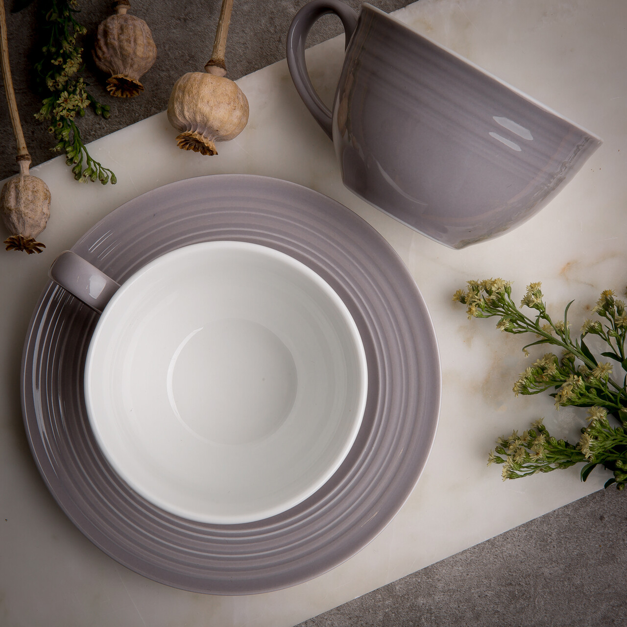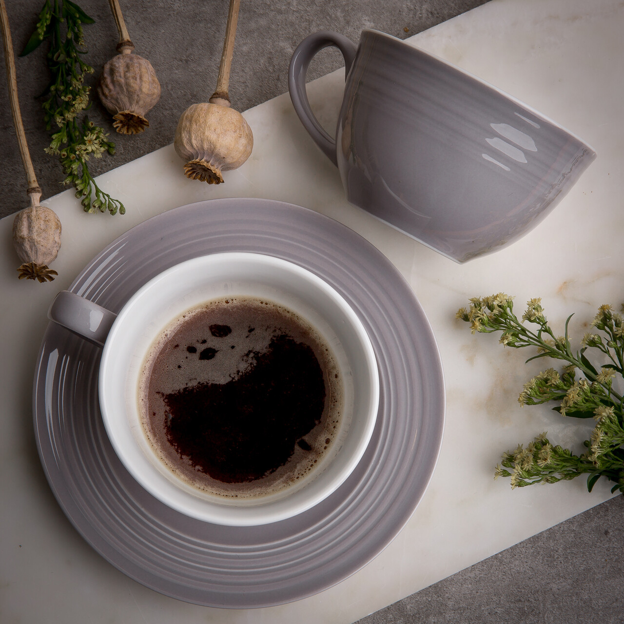 Set de cafea / ceai 12 piese Linea, Ambition, portelan, gri