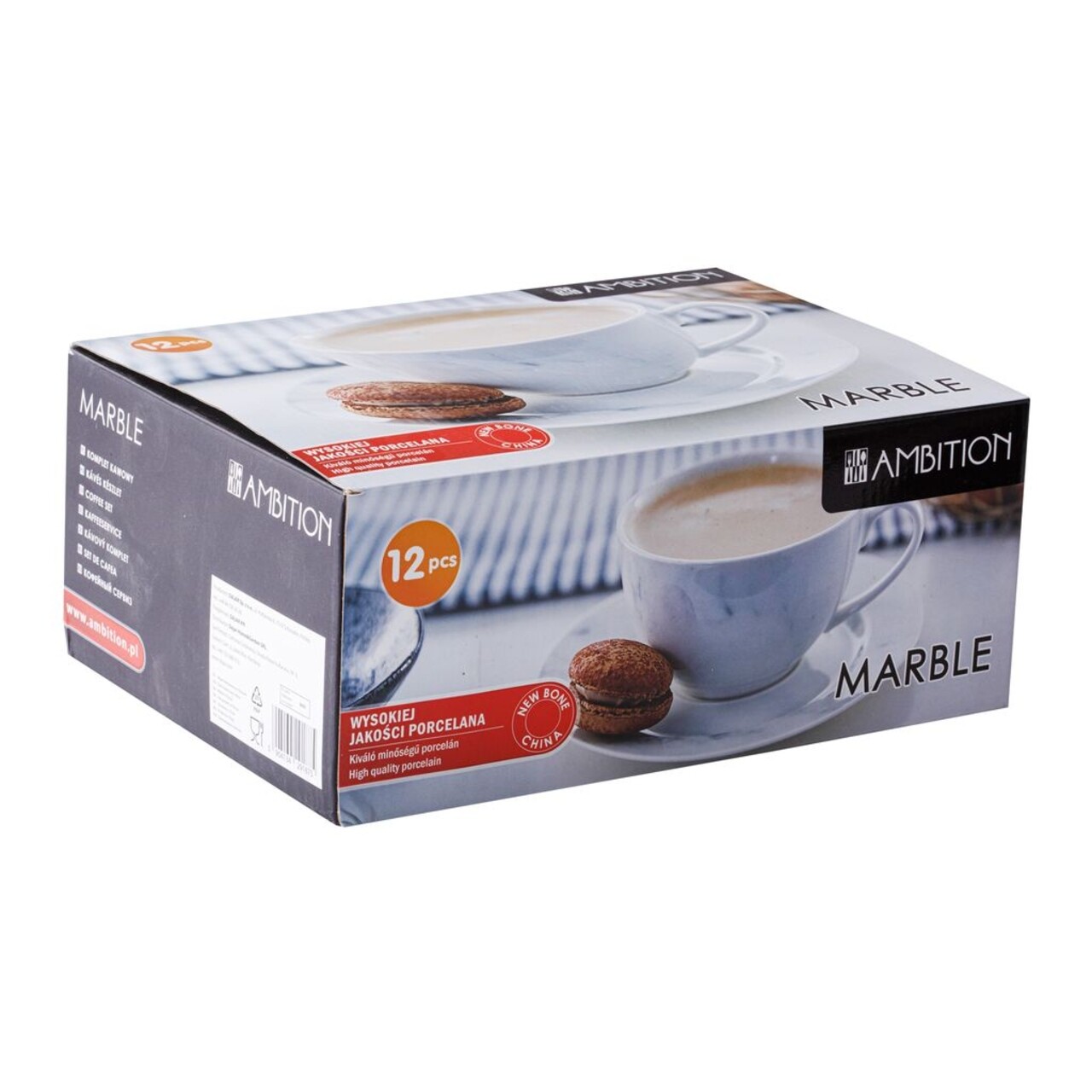 Set de cafea / ceai 12 piese Marble, Ambition, portelan, 200 ml, alb