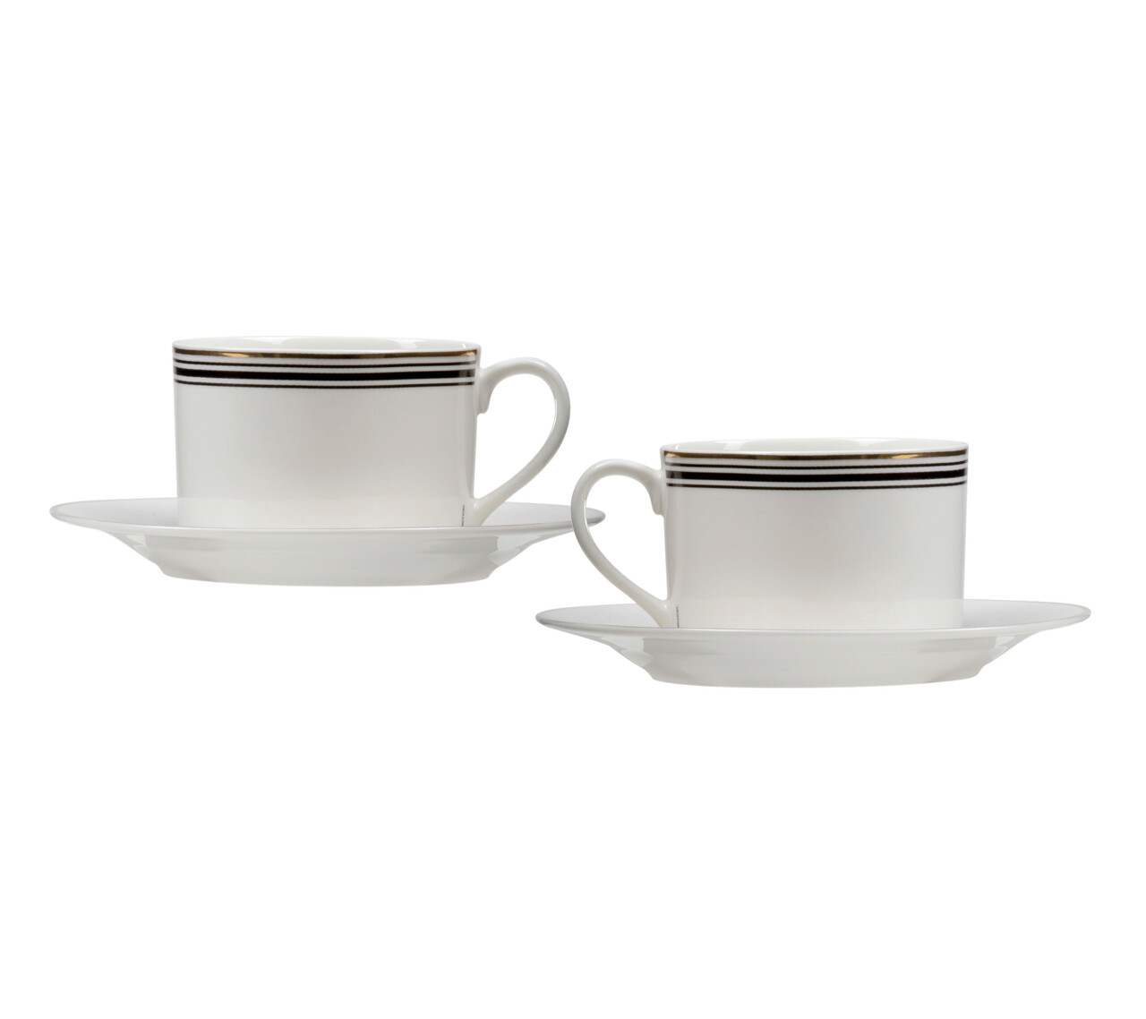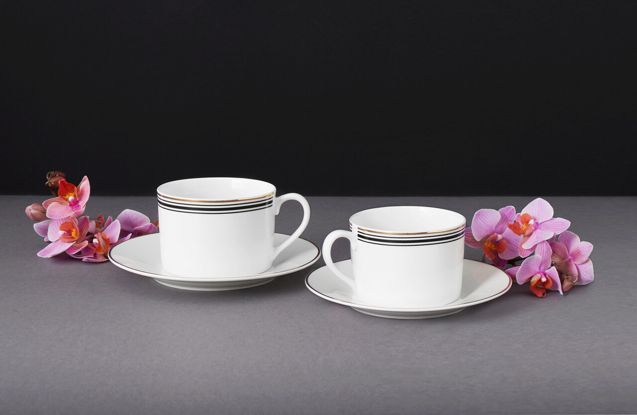 O combinatie de neegalat de minimalism modern cu o nota de lux. Vesela noastra pentru cafea/ceai este decorata cu dungi delicate negre si aurii pe un fundal de portelan alb. Fiecare vas este unic datorita grosimii si configuratiei diferite a dungilor. Toate elementele formeaza un intreg armonios, conferind setului de cafea un caracter unic. Este un accesoriu perfect pentru orice colectie de casa si o completare exceptionala pentru orice bucatarie.