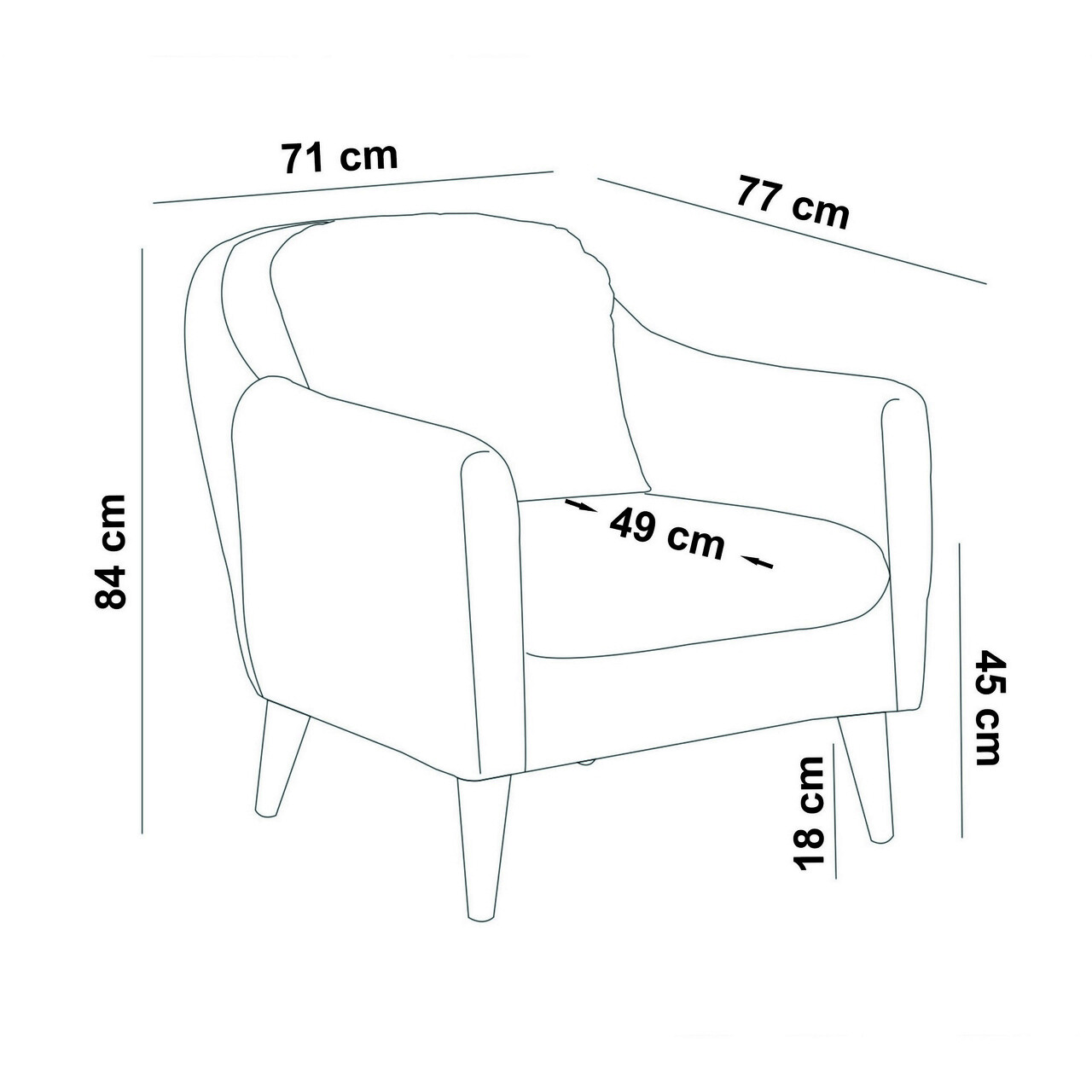 Adâncimea scaunului scaunului cu aripă: 49 cm