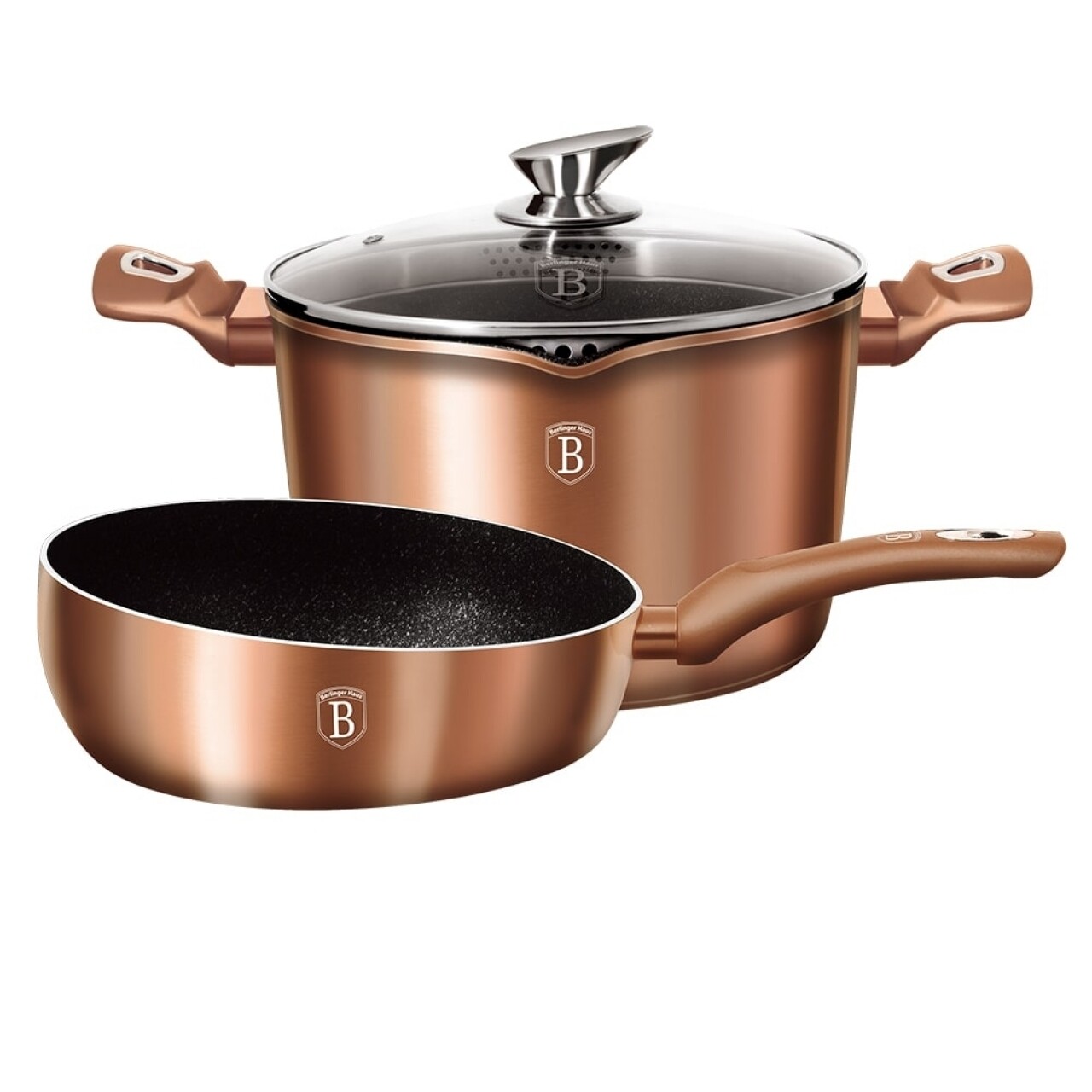 Set de gatit 3 piese, din aluminiu forjat si marmura, Berlinger Haus, Rose Gold
