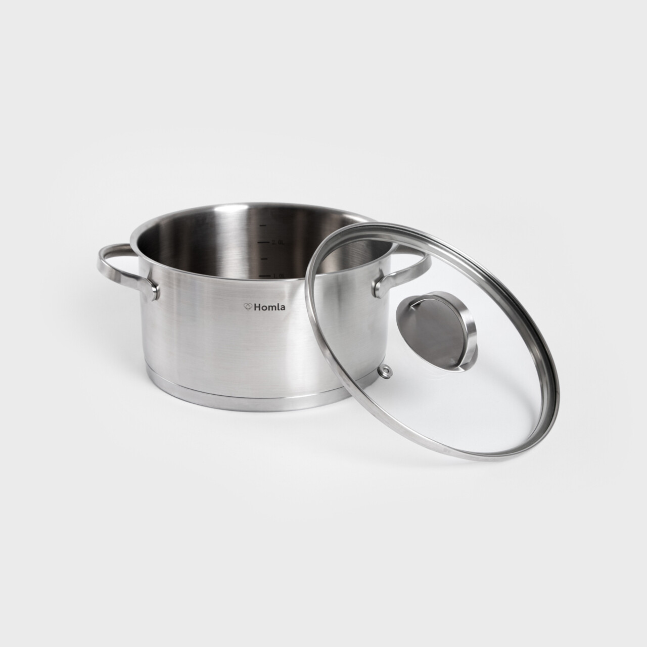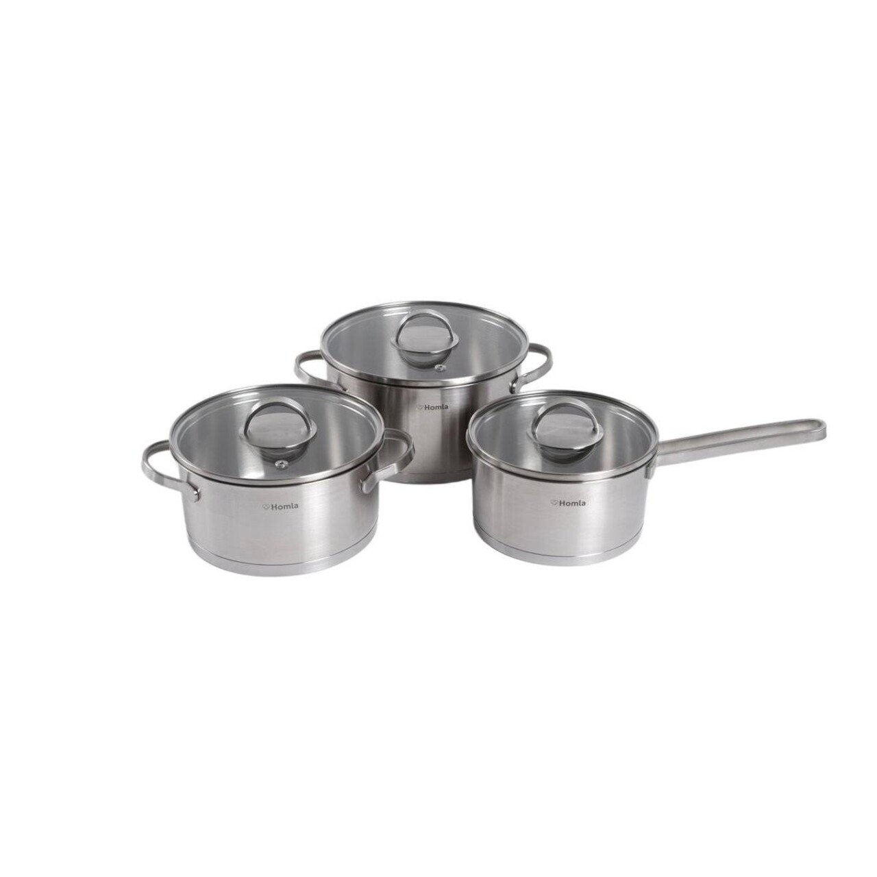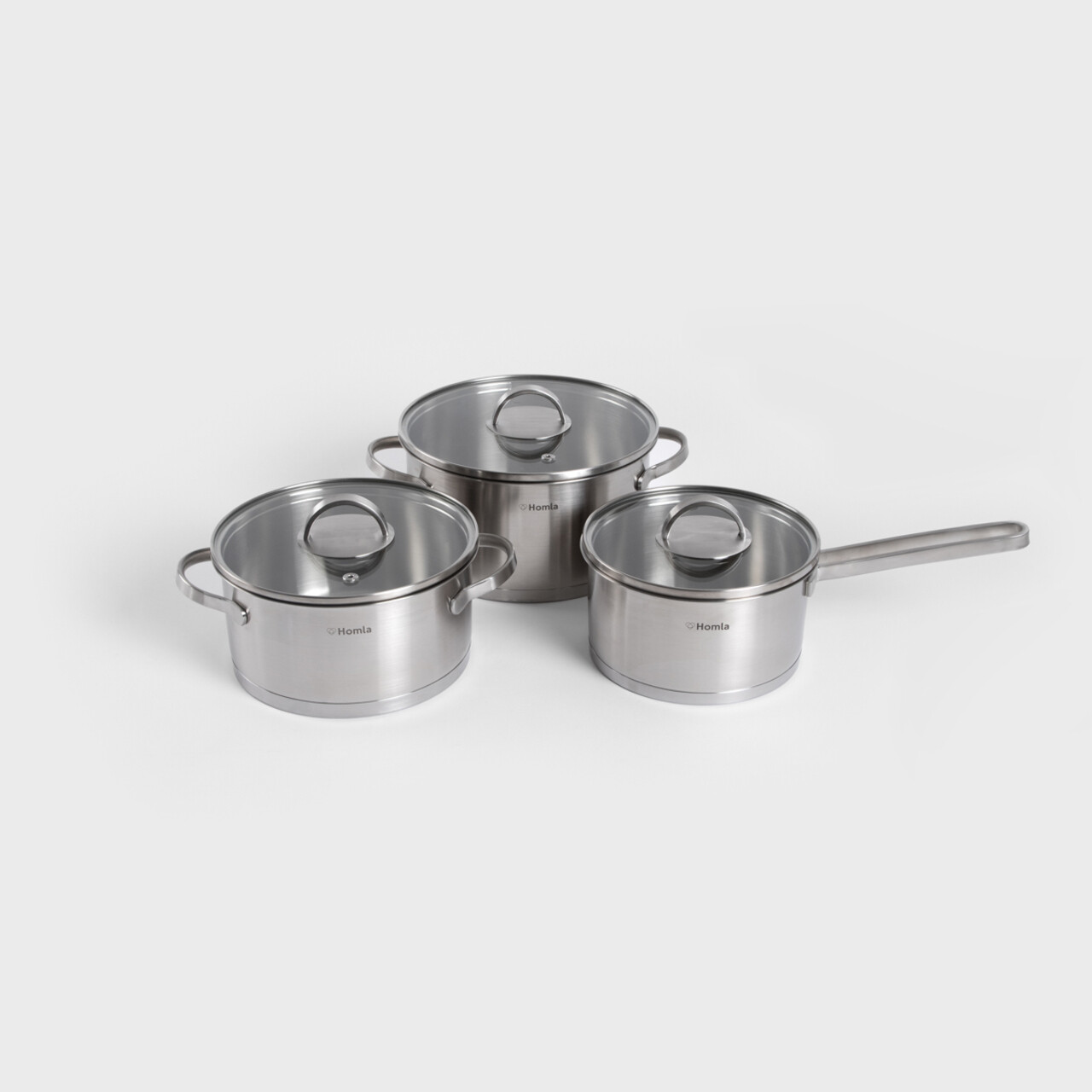 Set de gatit 6 piese Eataly, Homla, 1.5 L / 2 L / 2.5 L, inox/sticla, argintiu