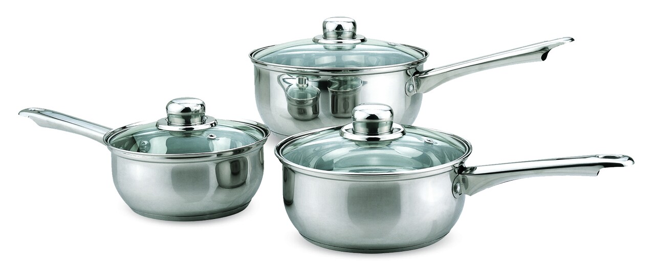Set de gatit 6 piese, Sabichi, 1 l, 1.5 l, 2 l, inox, argintiu